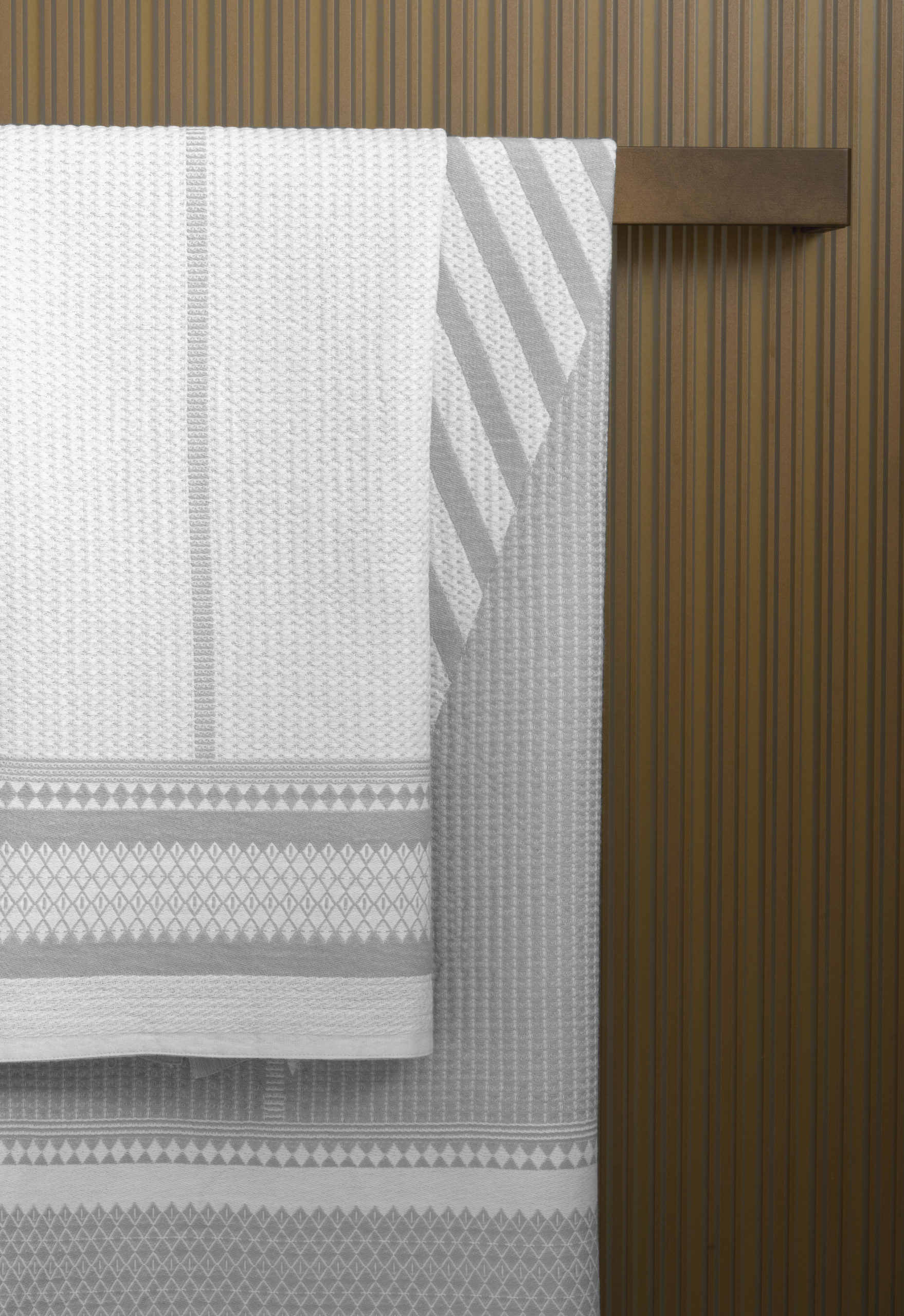 Le geste constructif des structures architecturales et des armures de tissage se répondent et s’harmonisent pour donner lieu à une collection confidentielle à laquelle, les lignes contemporaines et les coloris profonds conférent : sophistication et élégance. Épurée et intimiste, Bath Club est une invitation à la détente et au bien-être.