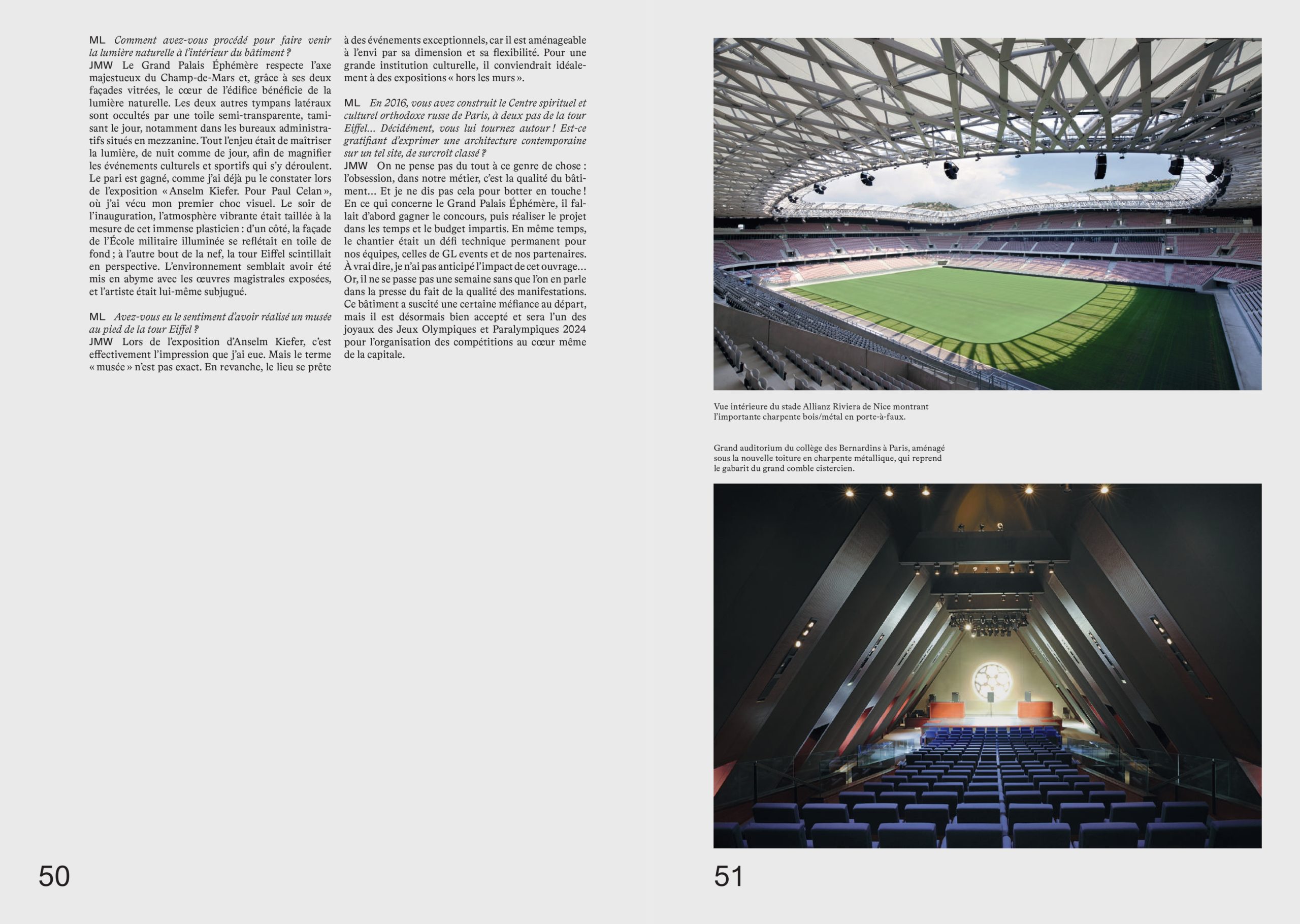 Ce livre met en perspective le bâtiment avec cet héritage historique ainsi qu’avec celui de l’architecture éphémère. Mais il permet surtout de découvrir les coulisses de ce projet hors normes. Quelle en a été la genèse ? Comment le chantier s’est-il déroulé ? Quel accueil public lui a-t-il été réservé ? L’ouvrage, agrémenté d’un cahier de plans très complet, revient sur les éléments forts de l’architecture du Grand Palais Éphémère. »