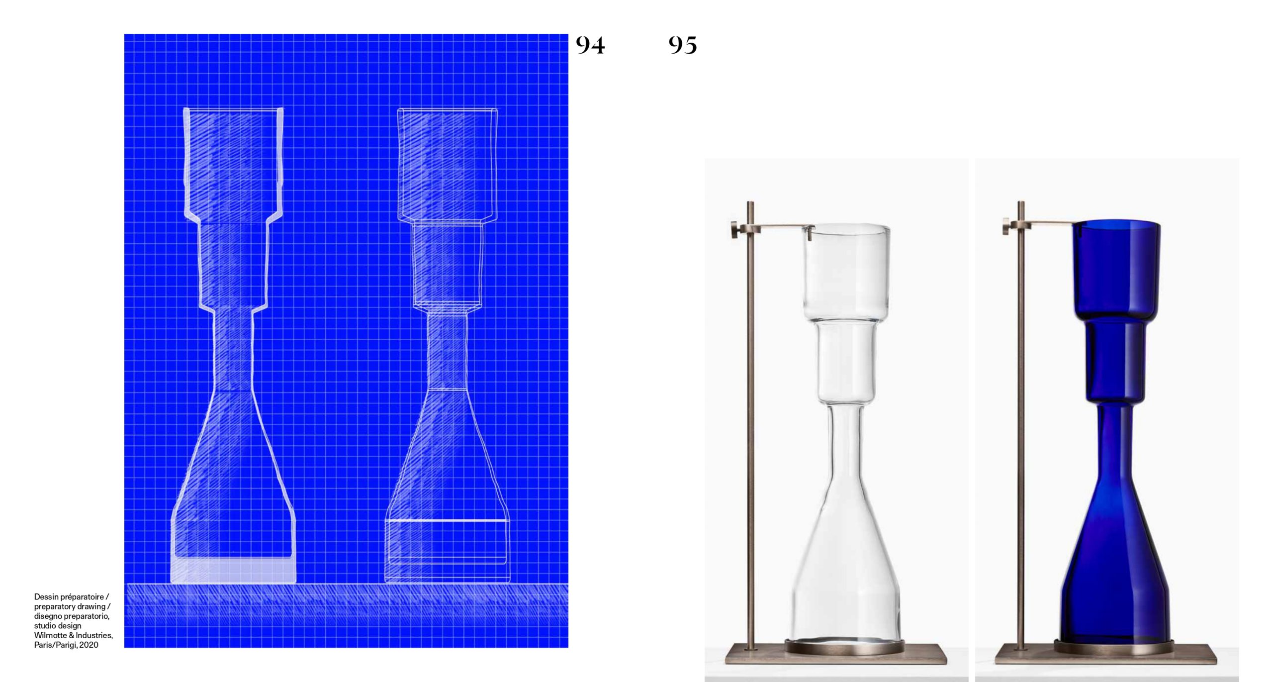 Mettant à l’honneur le savoir-faire unique des souffleurs de verre et artisans verriers vénitiens, la collection « Vaisseaux » créée par Wilmotte est un savant mélange de tradition et de modernité. Les œuvres, inspirées par les flacons et alambics du laboratoire de son père pharmacien, sont réalisées dans les ateliers historiques de Murano, île de la lagune vénitienne connue dans le monde entier pour l’excellence de ses maîtres verriers.