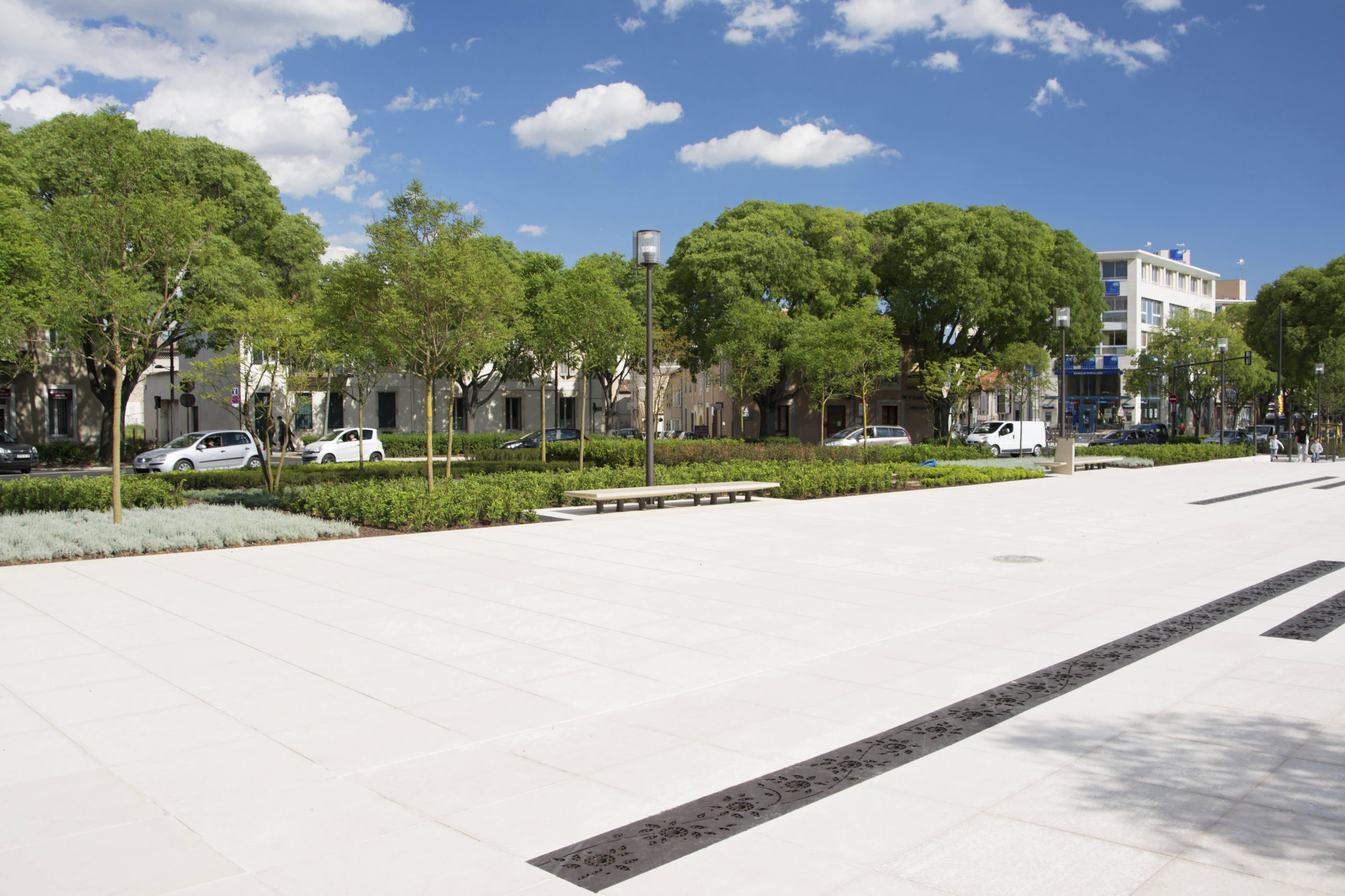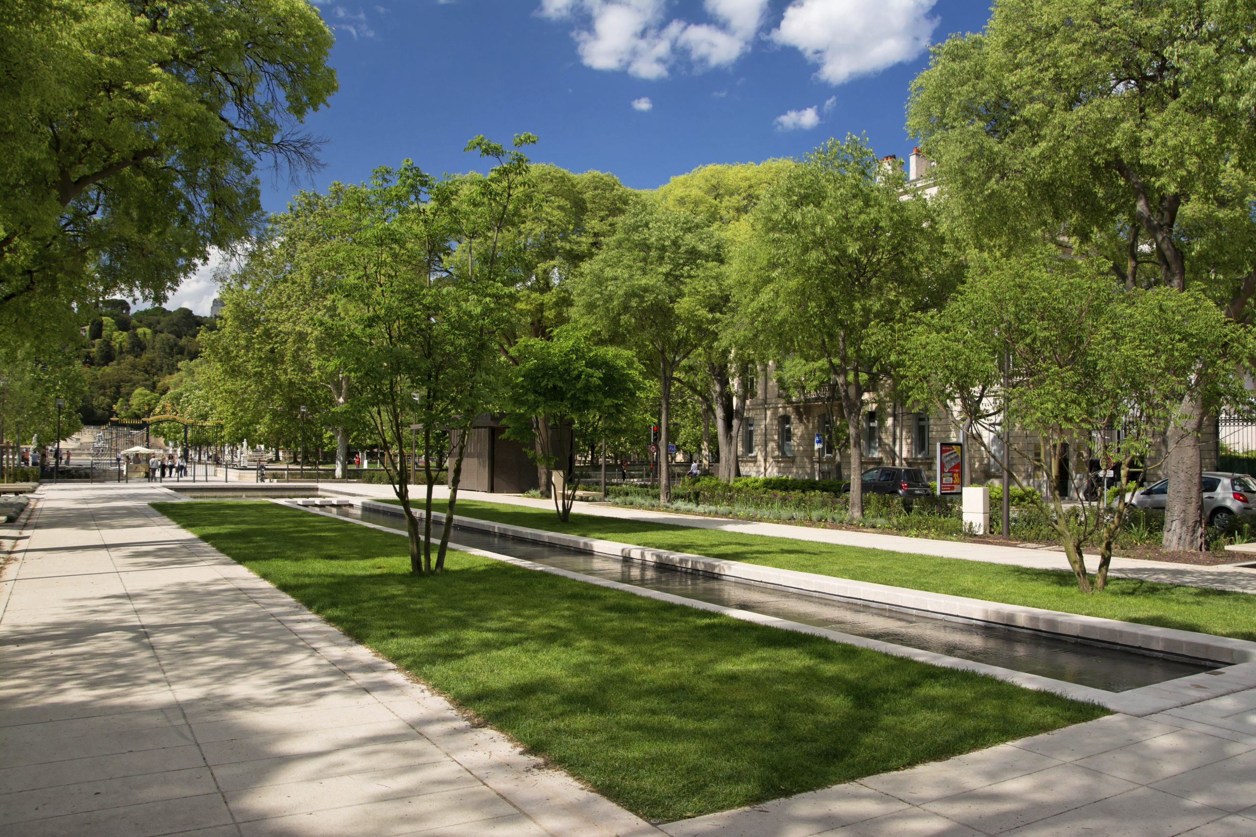 The first part of the avenue, from the fountain gardens to Place Jules Guesde, is dedicated to water (canal, ponds, water mirror) and gardens (lawns, wooden terraces). The second part, between Place Jules Guesde and Place Séverine, is a more mineral sequence due to the underground car park and the markets that are held there. The third part, from Place Séverine to Avenue de la République, is dedicated to local uses, with numerous playgrounds, terraces and petanque courts.