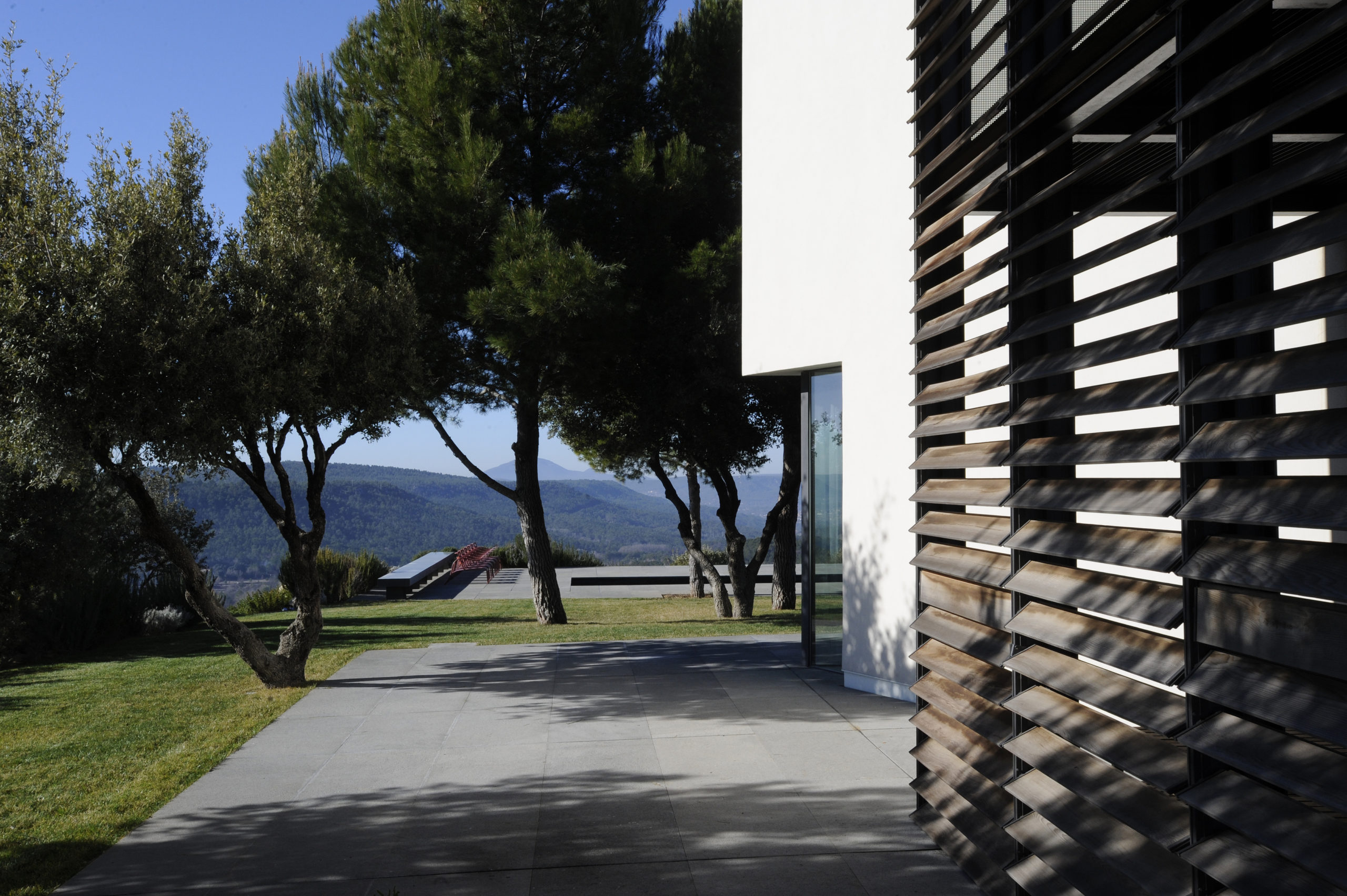 The project proposes a more orderly and quiet façade design than the original one. The overall volume of the building is retained. The simpler and purer geometry of the redesigned house offers a real diversity of views. On the south façade, a large wooden screen frames the volume, supports a balcony on the first floor and turns over at the roof to provide a large pergola on the terrace, which looks out over the land of the black truffle in 360 degrees.
