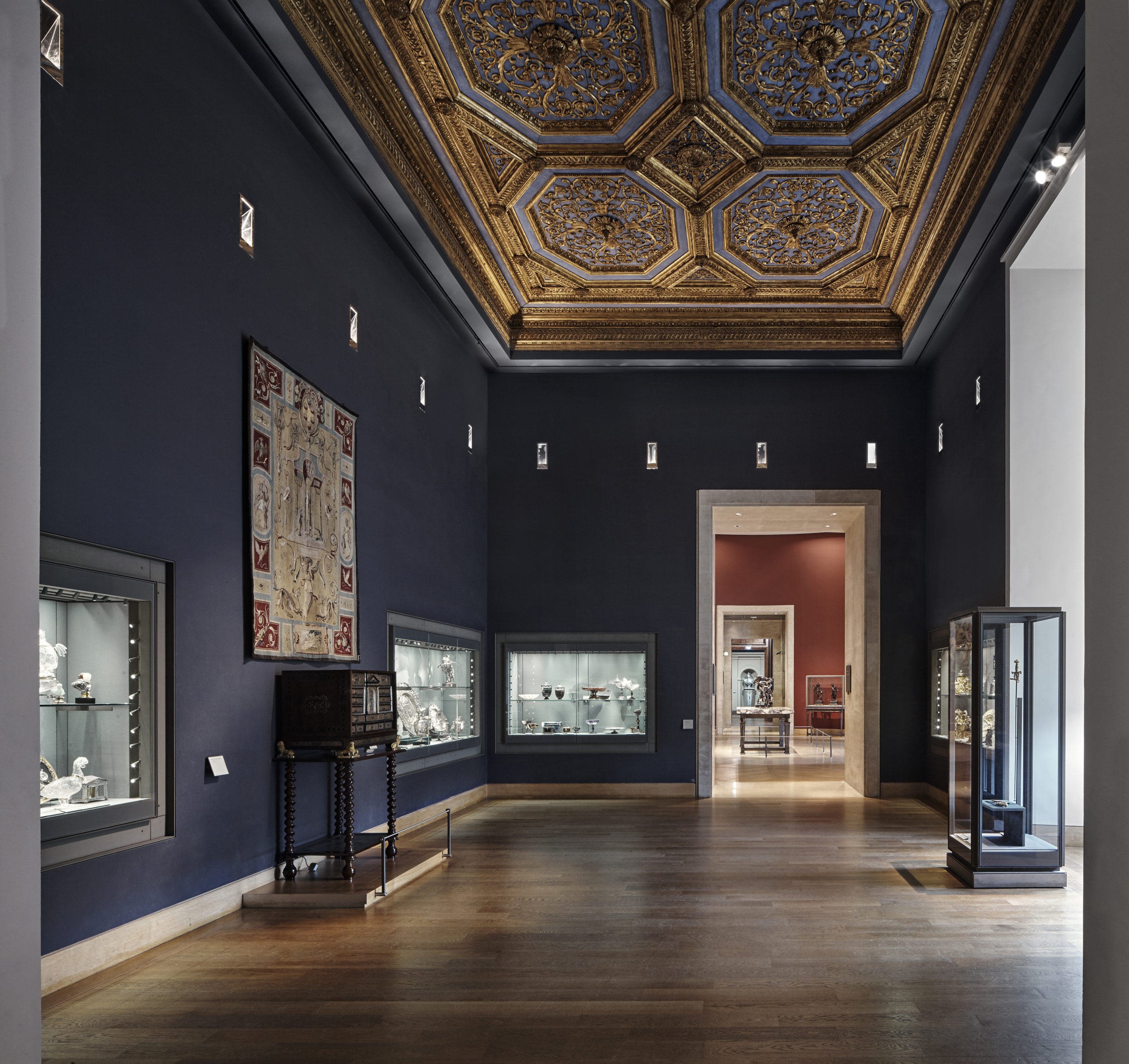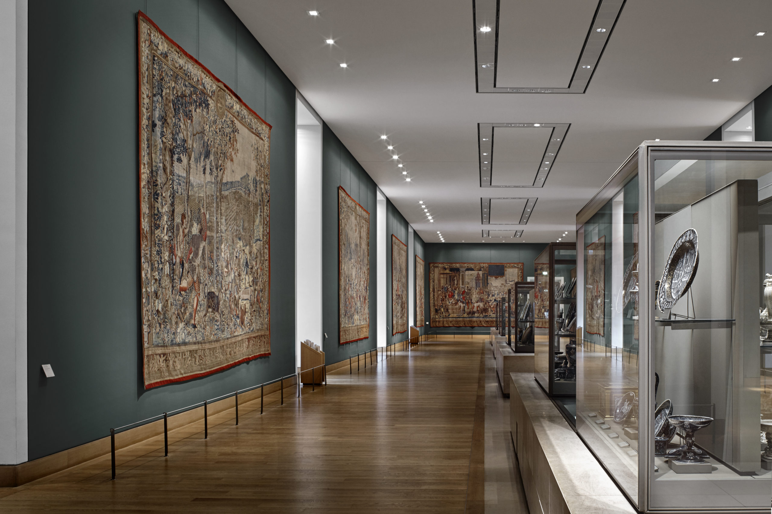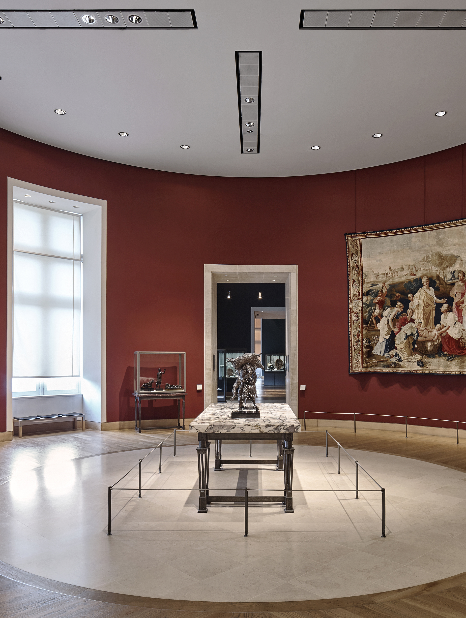 The main challenge was to design airy spaces that allow a pleasant reading of the works. The spaces on the first floor are made up of very different volumes, which offer the visitor different sensations from one space to another, while respecting the architecture and the works on display: around 8,000 objects, ranging from a 10-millimetre Byzantine pendant to the tapestries of Maximilian or Scipio, with a surface area of around 30 sqm. Thus, the visitor passes from a succession of small rooms for the medieval period to gigantic galleries for the tapestries of the Renaissance. This alternation of more or less dense rooms gives the whole a certain breath of fresh air.