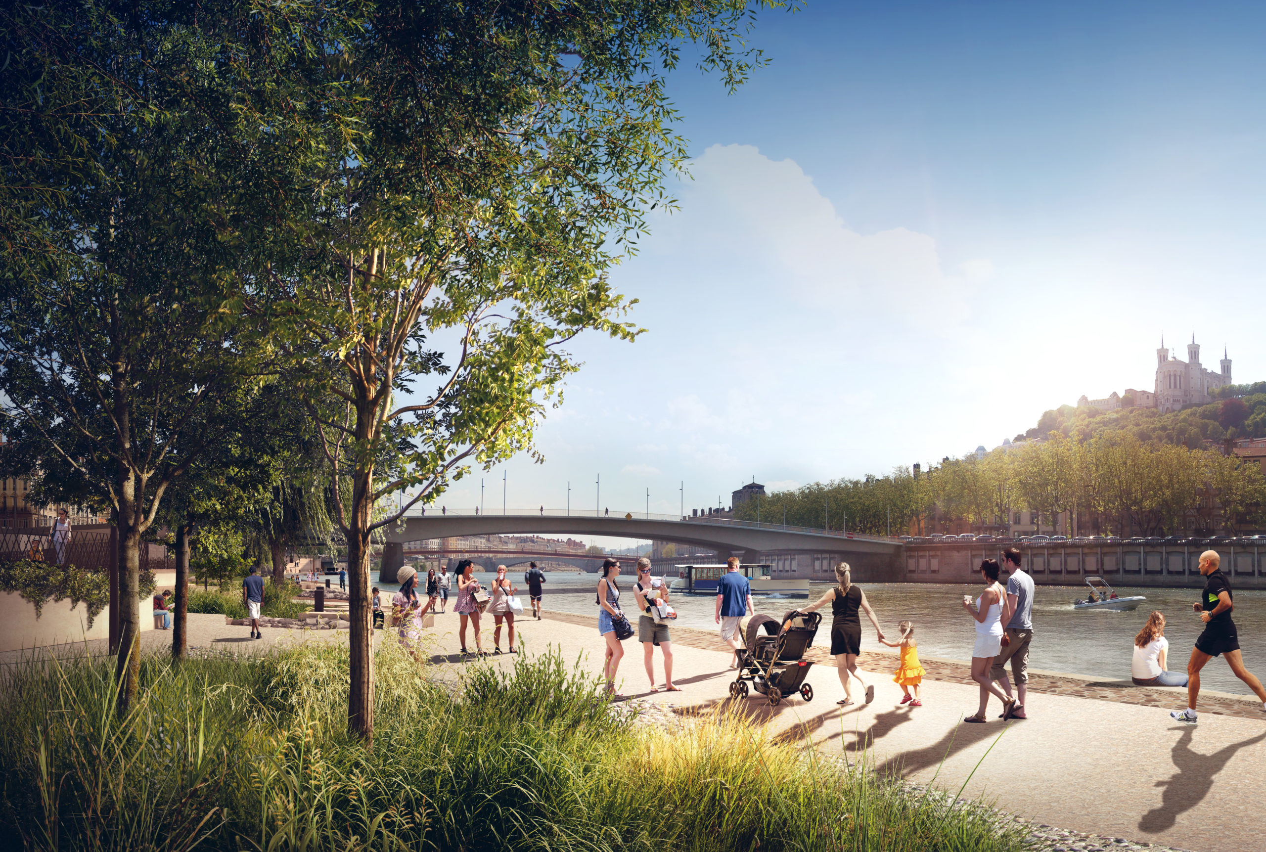 The car park has been replaced by café-restaurant terraces and the tarmac has been replaced by Burgundy stone paving. The water features of the three fountains and the mineral treatment give the hemicycle-shaped square a more contemporary look. The space is divided into bus lanes, restaurants, entertainment and rest areas. The Place de la Libération has also benefited from the introduction of a new traffic plan and the extension of the pedestrian area encompassing the square. Only urban transport vehicles are still allowed to drive along the town hall side of the square.