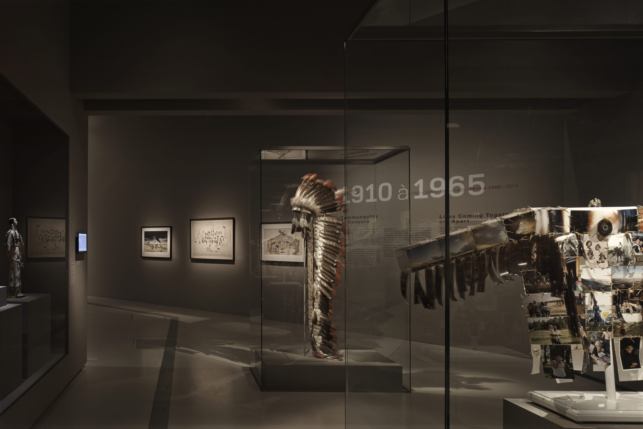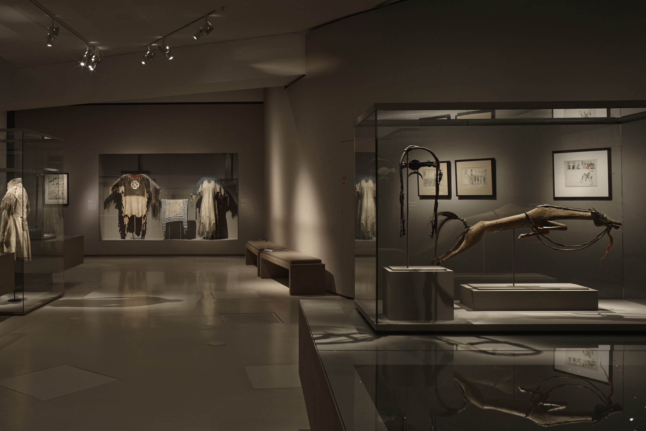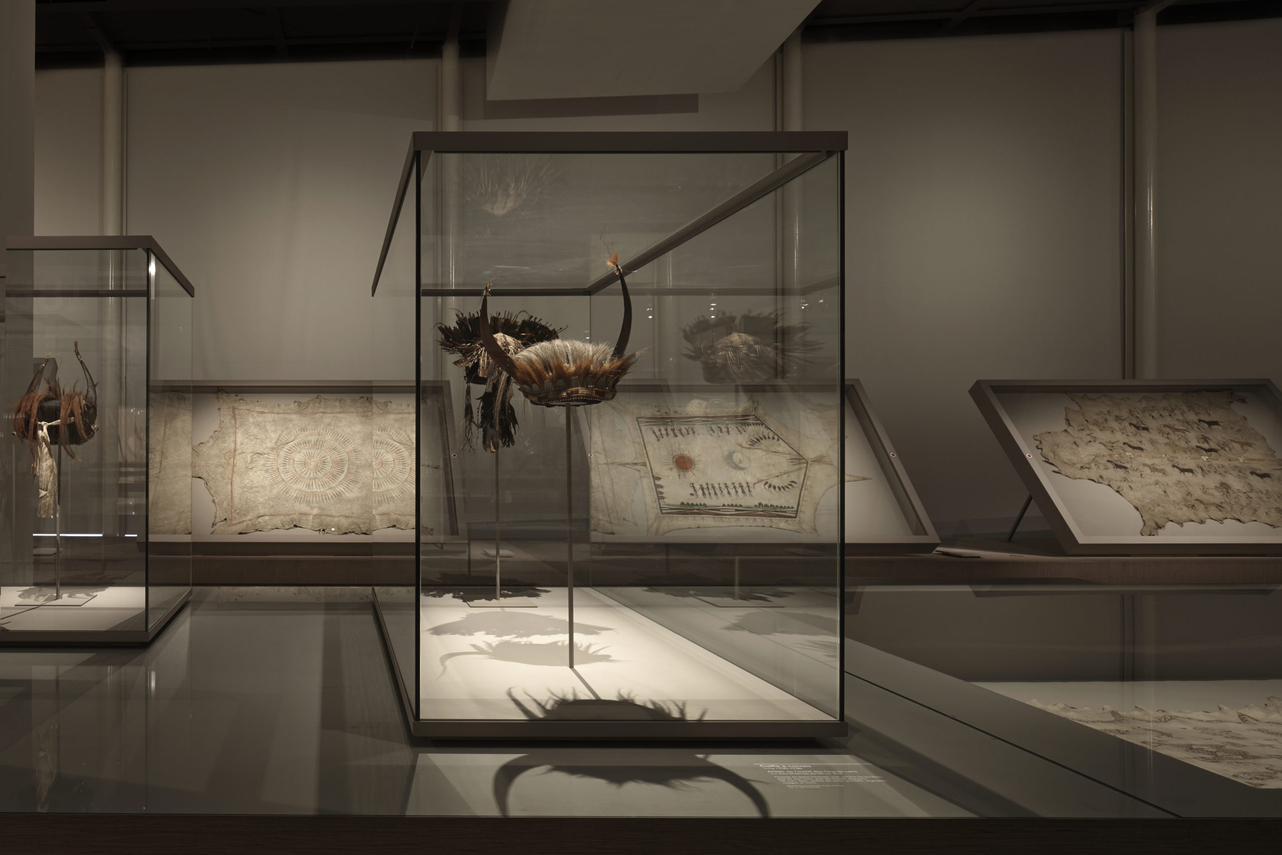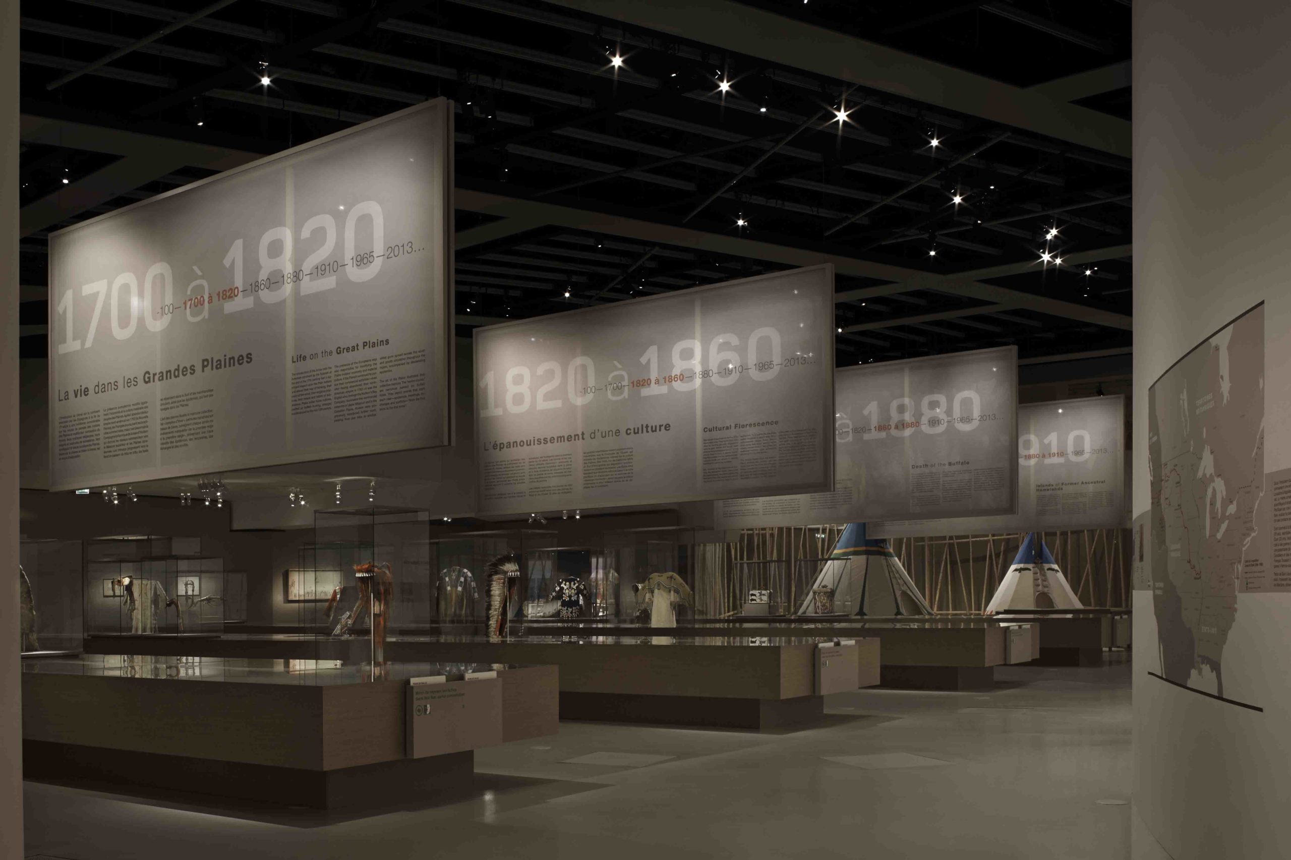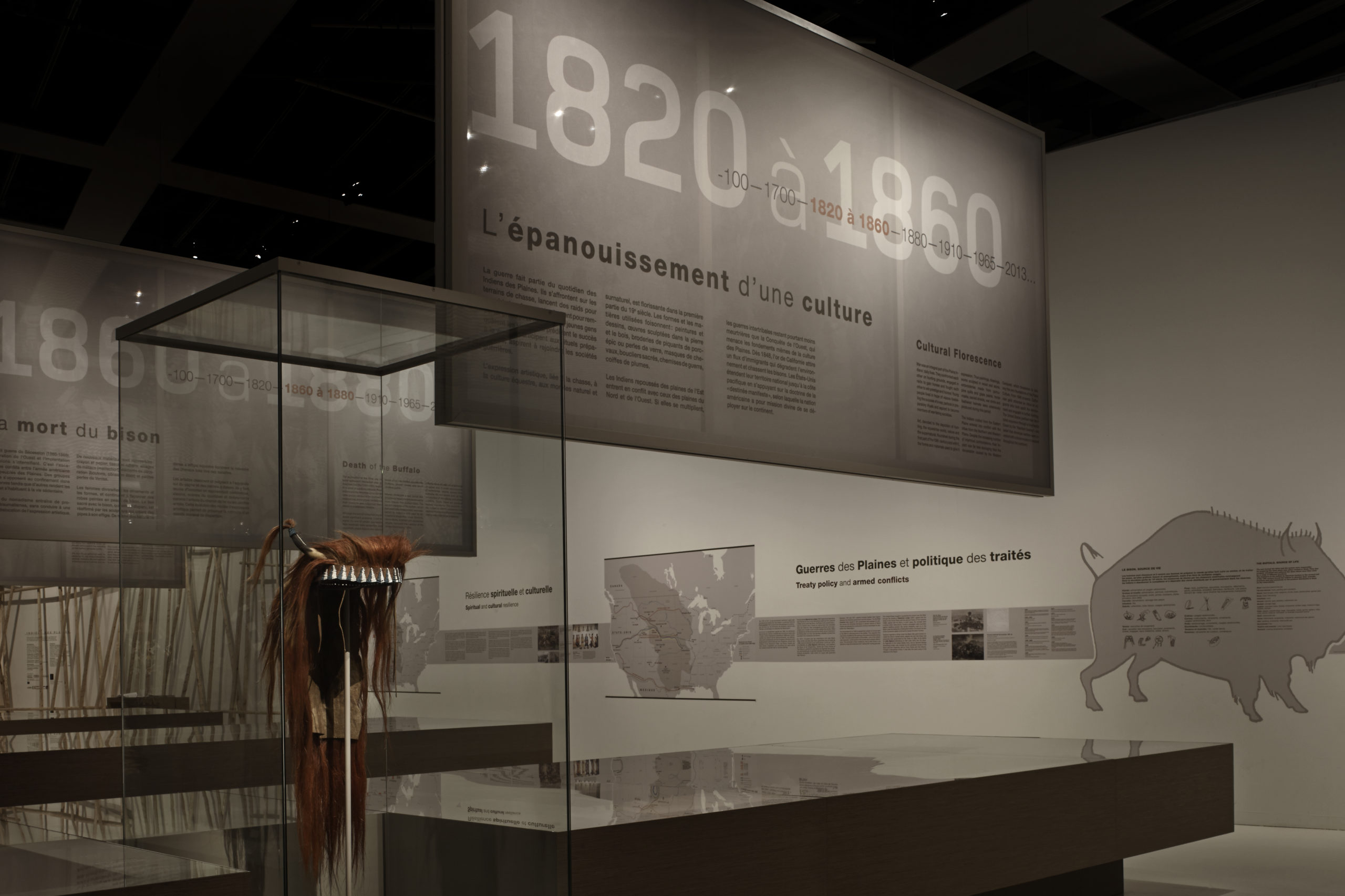 The exhibition’s scenography is designed as a continuous journey through time. It evokes distant lands and the strong aesthetic traditions of a people in search of an identity. The deliberately sober and minimalist scenography aims to highlight the richness and creativity of the Plains Indians. By highlighting a continuous aesthetic tradition, it demonstrates the existence of a strong and constant cultural identity.