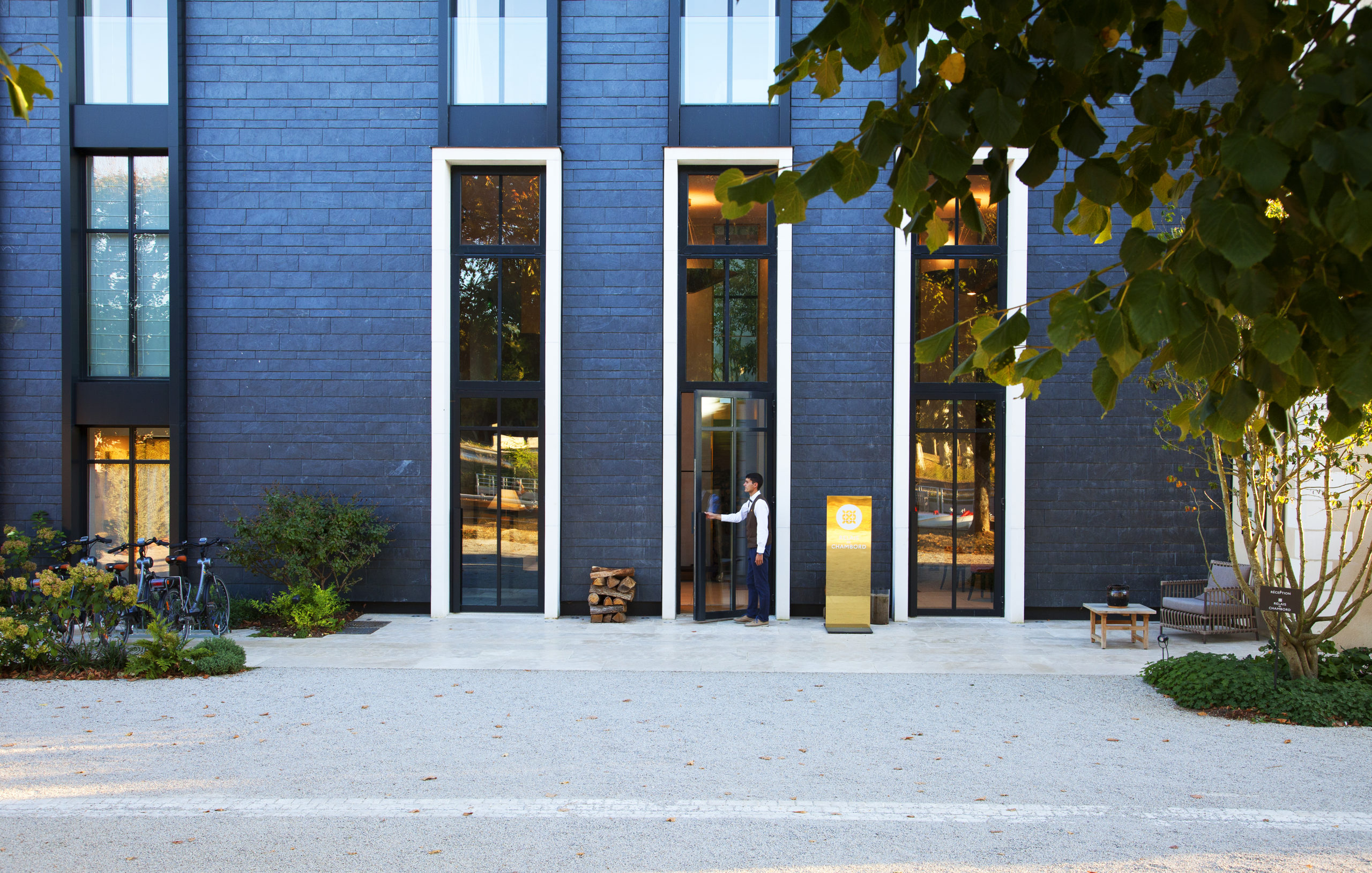 This 4-star hotel is unique in that it offers an independent spa and a wine storehouse overlooking the vines. The existing farm buildings have been preserved in keeping with the local heritage, with stonework and exposed beams. Two contemporary additions, in the form of glass envelopes, link the old buildings together, both functionally and aesthetically. They thicken up the old buildings by creating additional passageways between them.