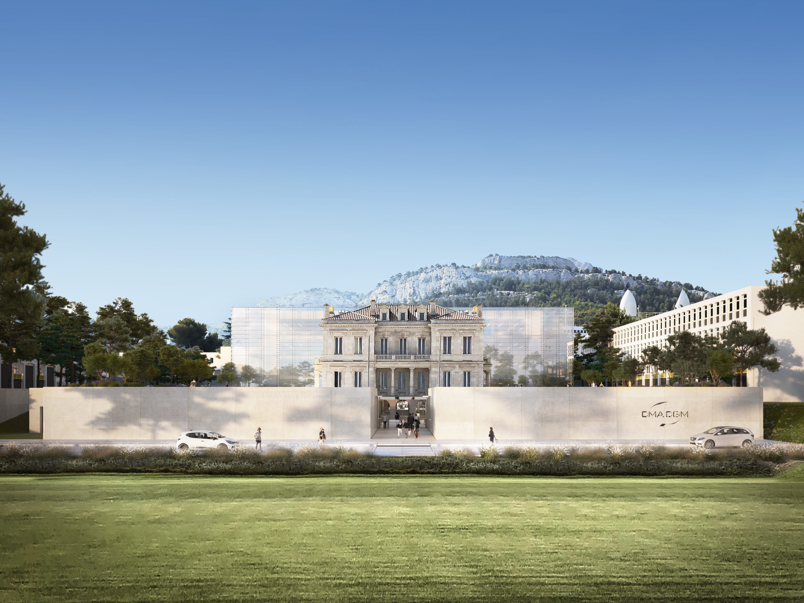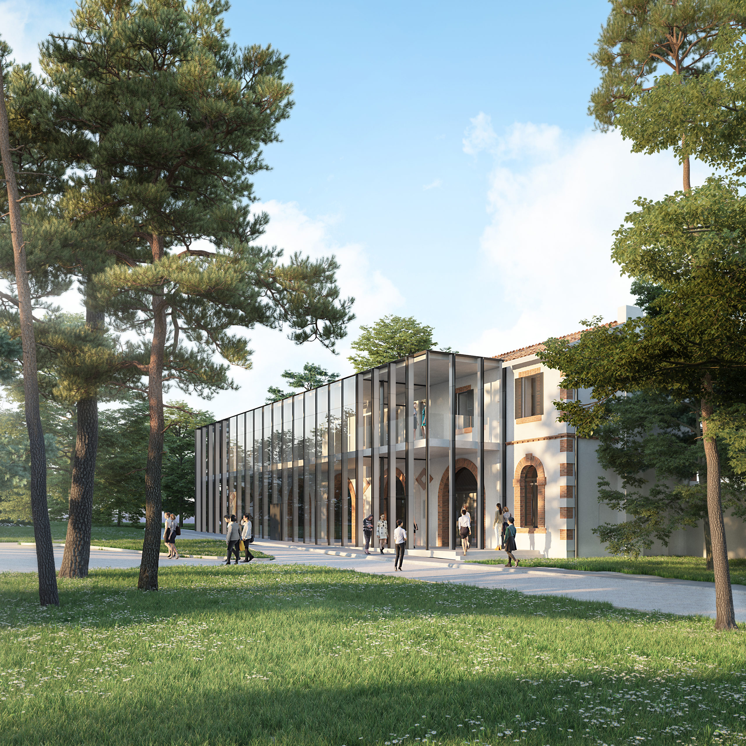 The 19th century bastide is at the heart of the project. The programme is organised around several areas: 300 sqm reception area, 300 sqm café area, 150 sqm knowledge areas (dedicated to the library, research work and documentation), 200 sqm administrative area, 400 sqm terrace area, 500 sqm marine area (dedicated to marine training, with classrooms, training and simulation), 500 sqm digital space (dedicated to exploratory approaches, ideation, prototyping and experimentation), 1000 sqm training space, 1000 sqm start-up space, 850 sqm leadership space (dedicated to major accounts and seminars), 410 sqm living space (dedicated to fast food and informal exchanges).