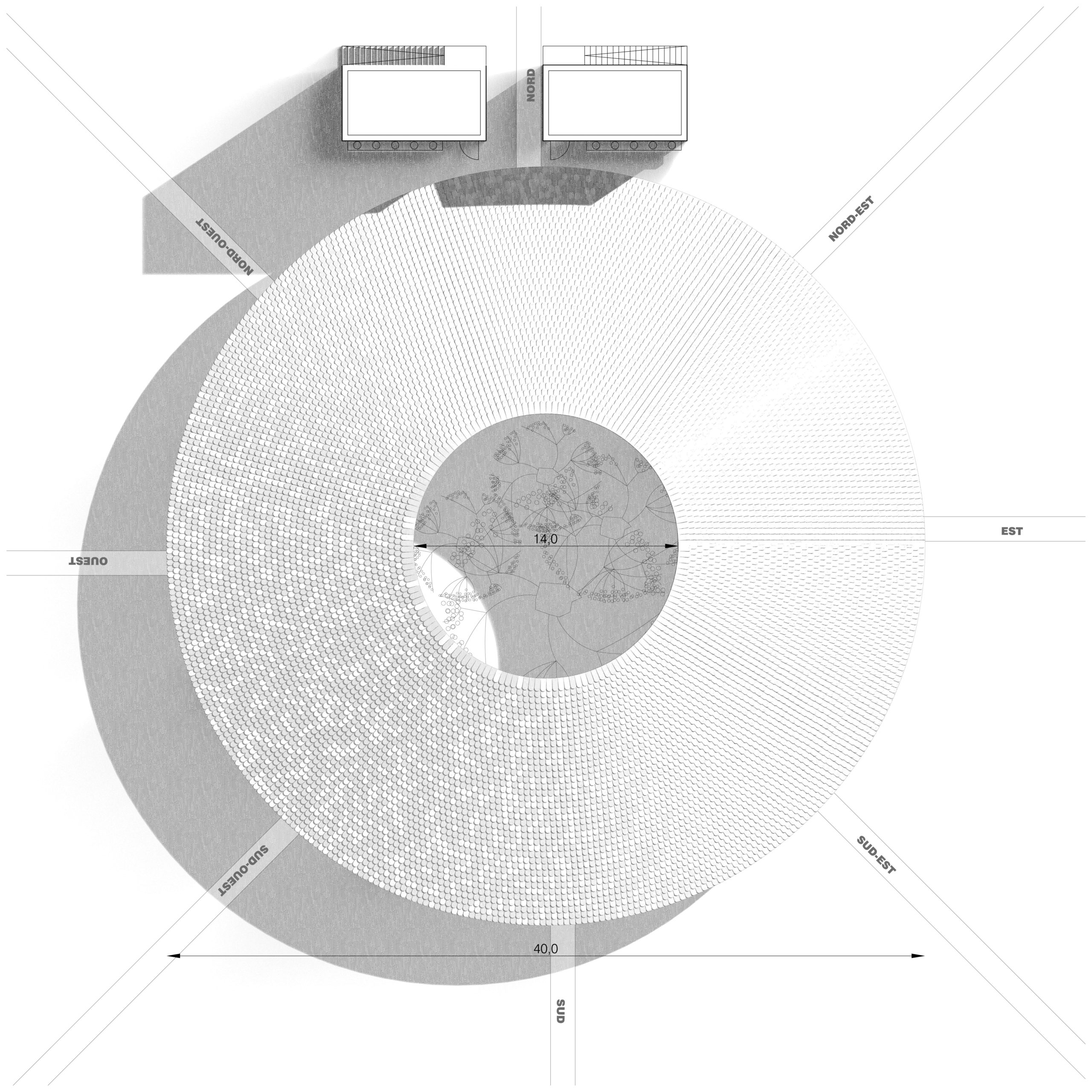 The project should be a positive sign for the children and their families. As a symbol of protection, the round, open roof houses eight independent volumes (seven classrooms and the headmaster’s office) at its centre. Oriented like a compass indicating the eight cardinal points, the building deliberately structures the vast space of the savannah. Eight paths run along the visual axes generated by the spaces between the classrooms, allowing the children to appropriate their land during breaks.