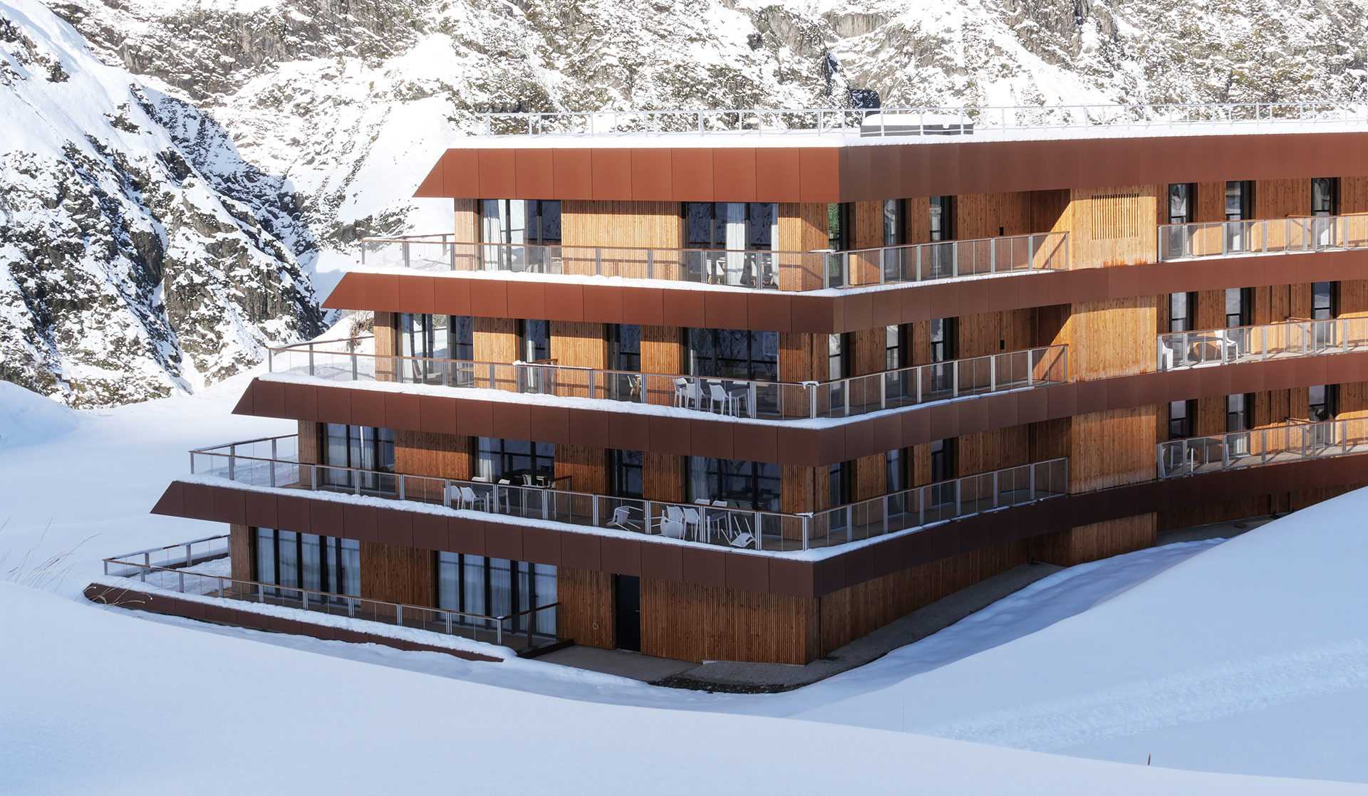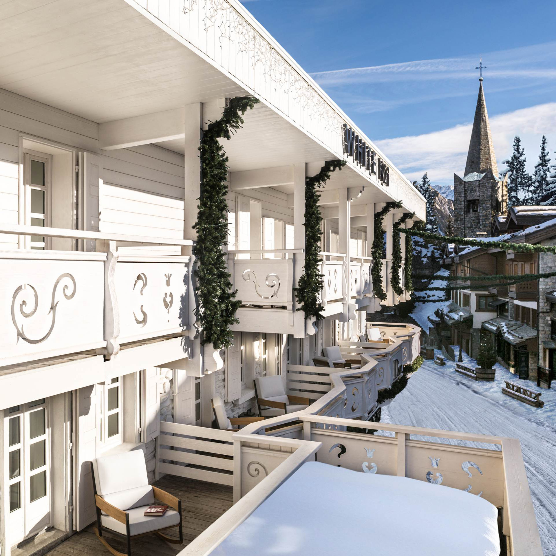 Located on rue du Rocher, at the base of the ski slopes, the WHITE 1921, a new hotel from the LVMH group, aims to reinvent the codes of mountain hotels: it stands out for its whiteness, as much for its painted façade as for the purity of its interior layout.