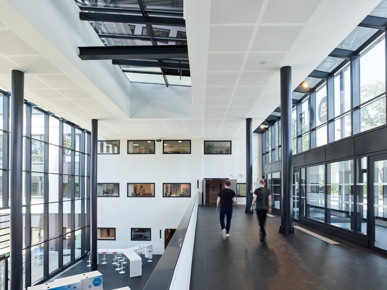 Les espaces permettent de varier les configurations et mettent l’accent sur la modularité, en minimisant le cloisonnement. La création de nouvelles circulations verticales vitrés permet l’omniprésence de la lumière naturelle.