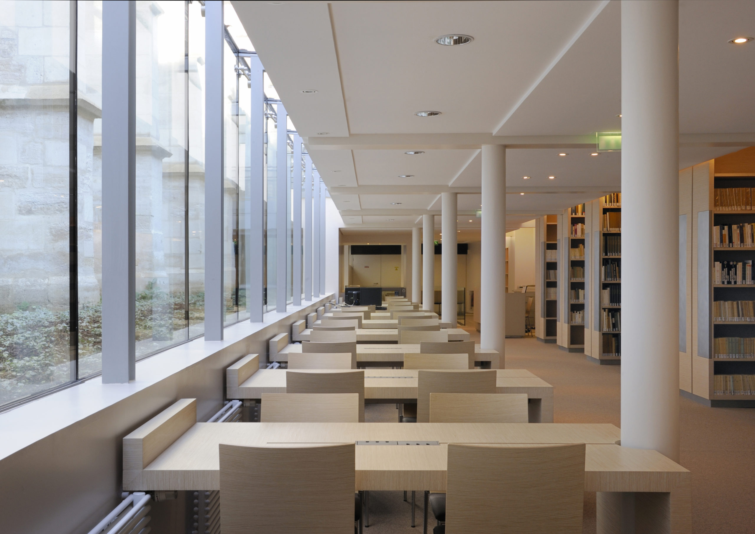 Restructuration de l’ancien couvent des Bernardins du 13ème siècle et aménagement intérieur : salles de classe, bureaux, bibliothèque, auditoriums, jardin.