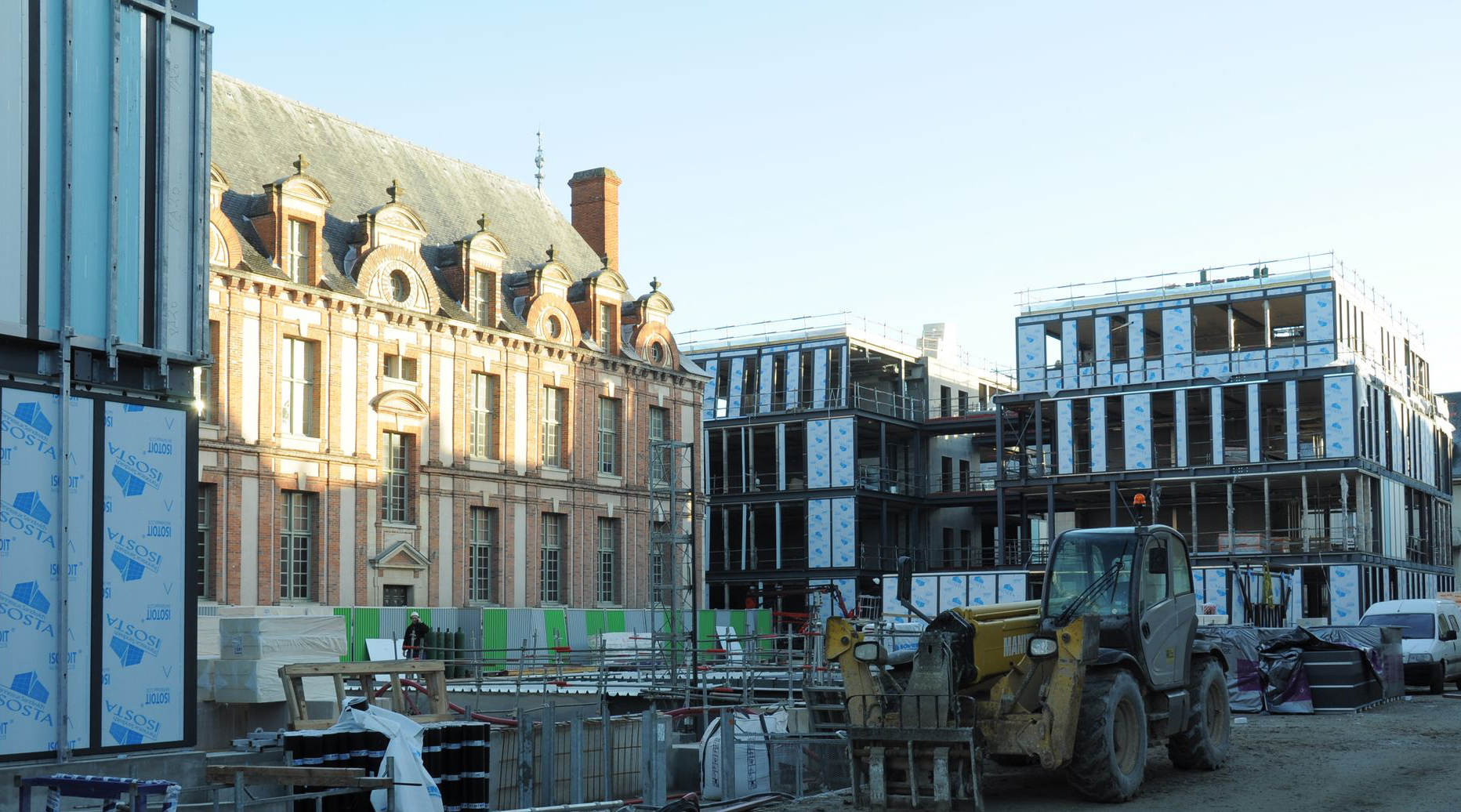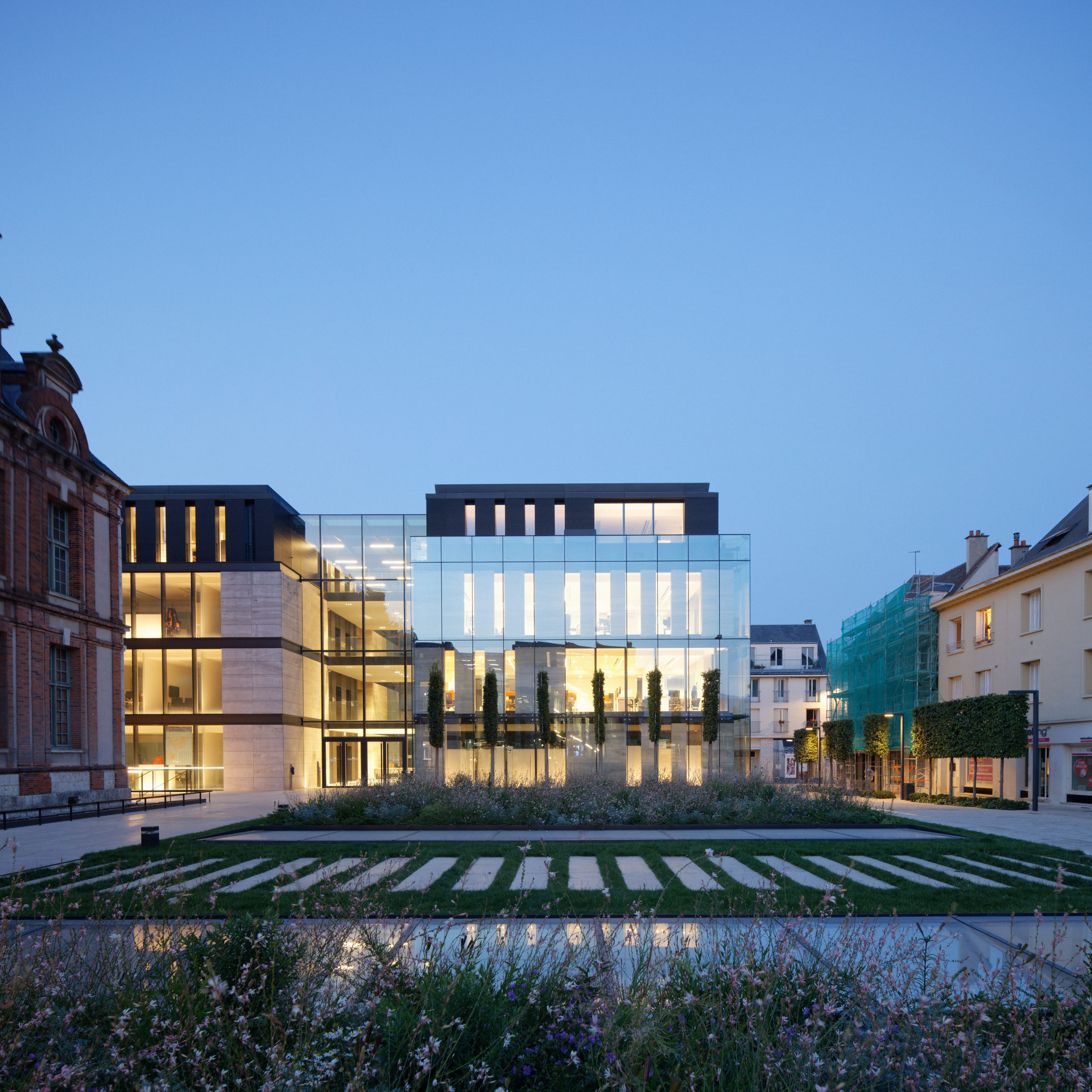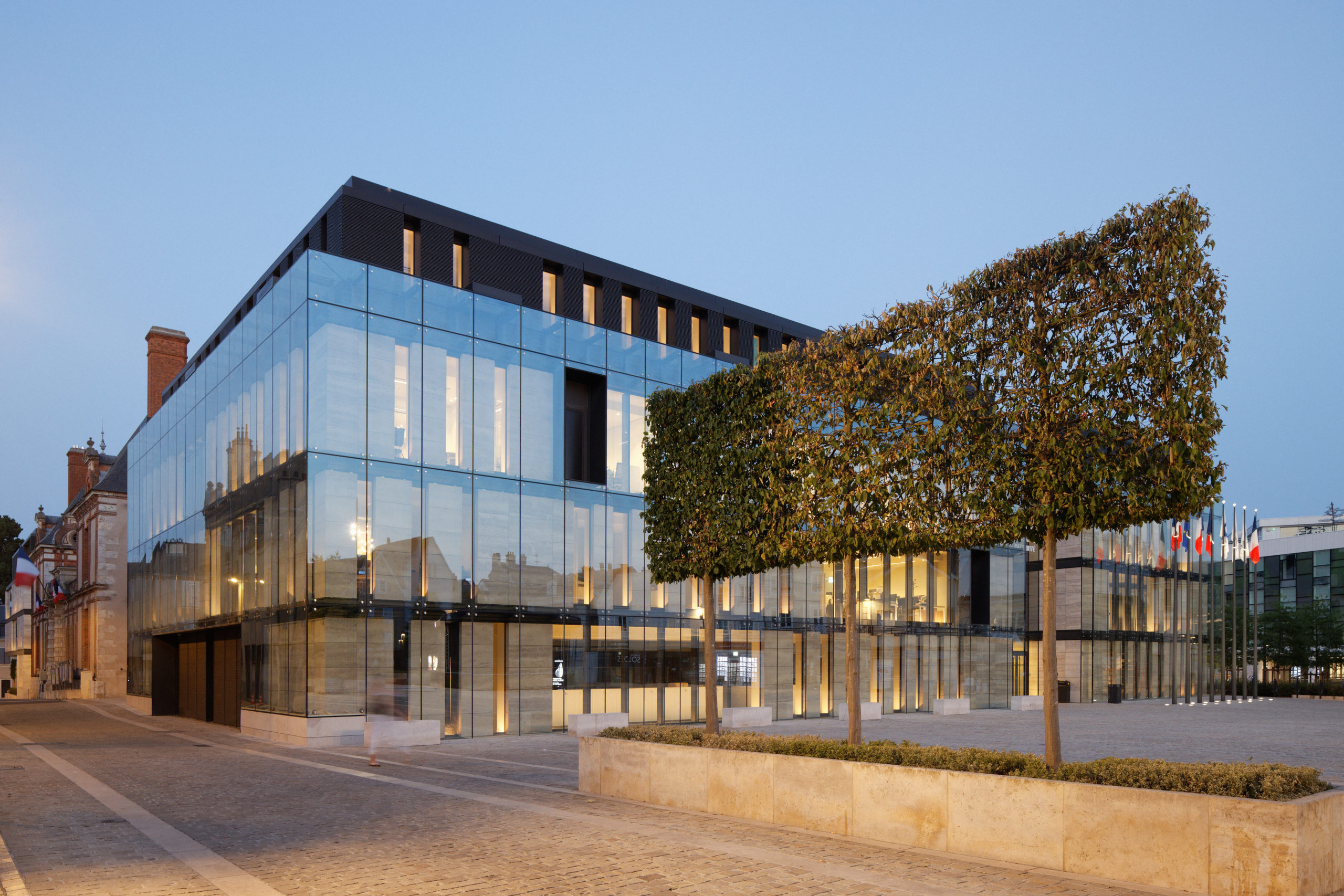 Trois entités s’expriment avec une grande lisibilité : l’hôtel Montescot (lieu des réceptions officielles et maison des élus), l’aile des Halles (services de la vie communale) et l’aile Saint-Michel (pôle administratif). Wilmotte & Associés a proposé des solutions additionnelles, telles que l’utilisation d’une structure et de façades à dominante mixte acier/bois et d’une toiture végétalisée, la récupération de l’énergie au niveau des locaux informatiques ou encore la mise en place de sondes géothermiques.