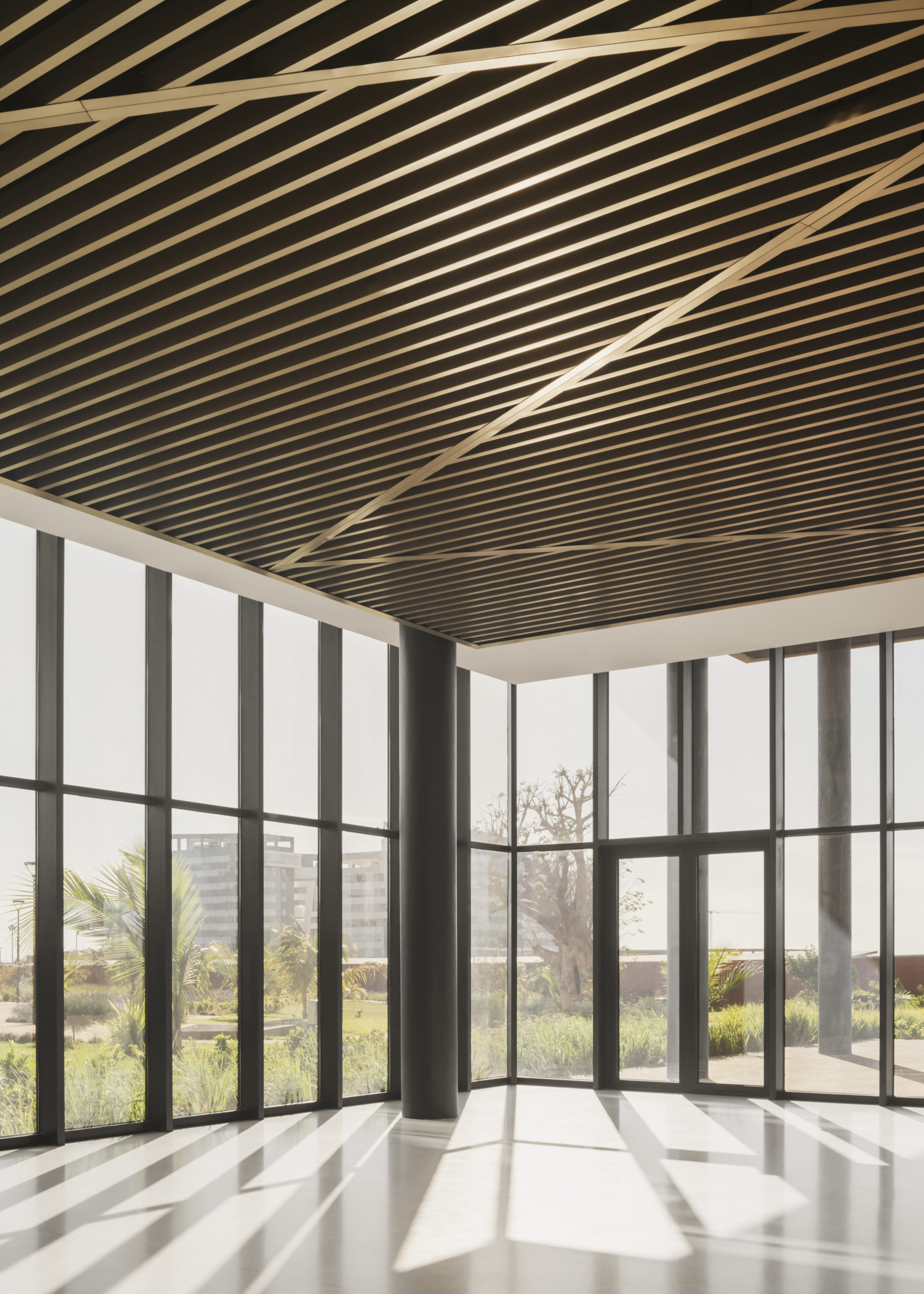 La modulation spatiale du programme fait écho à la forme. Les espaces officiels sont situés en plein cœur de l’édifice : amphithéâtre et espaces d’accueil accueilleront des conférences, séminaires et débats internationaux. Cette activité centrale est soutenue par un cercle d’espaces publics et communs tels que l’accompagnement informatique, les centres de consultation, les points de rencontre, les espaces de restauration, etc.
