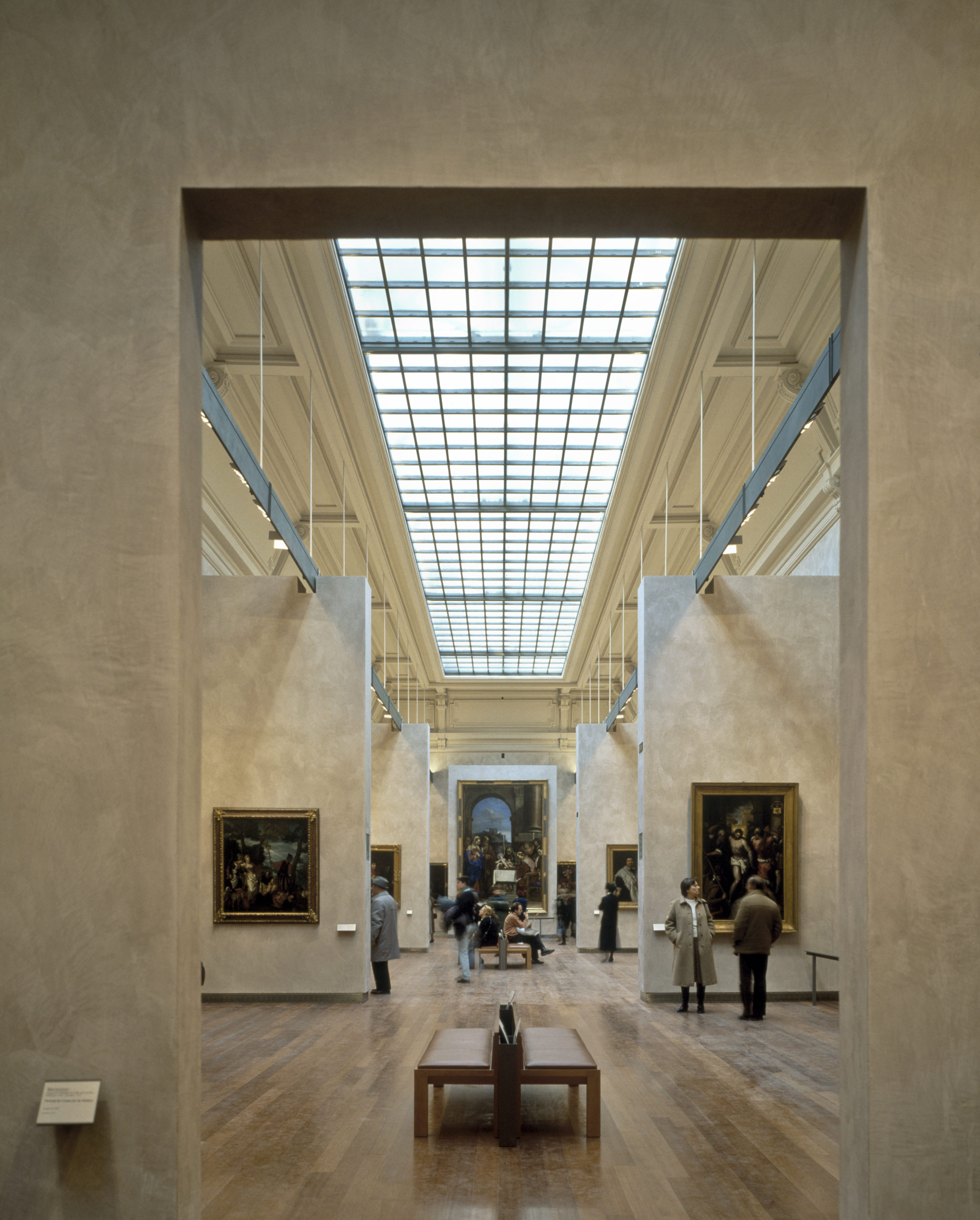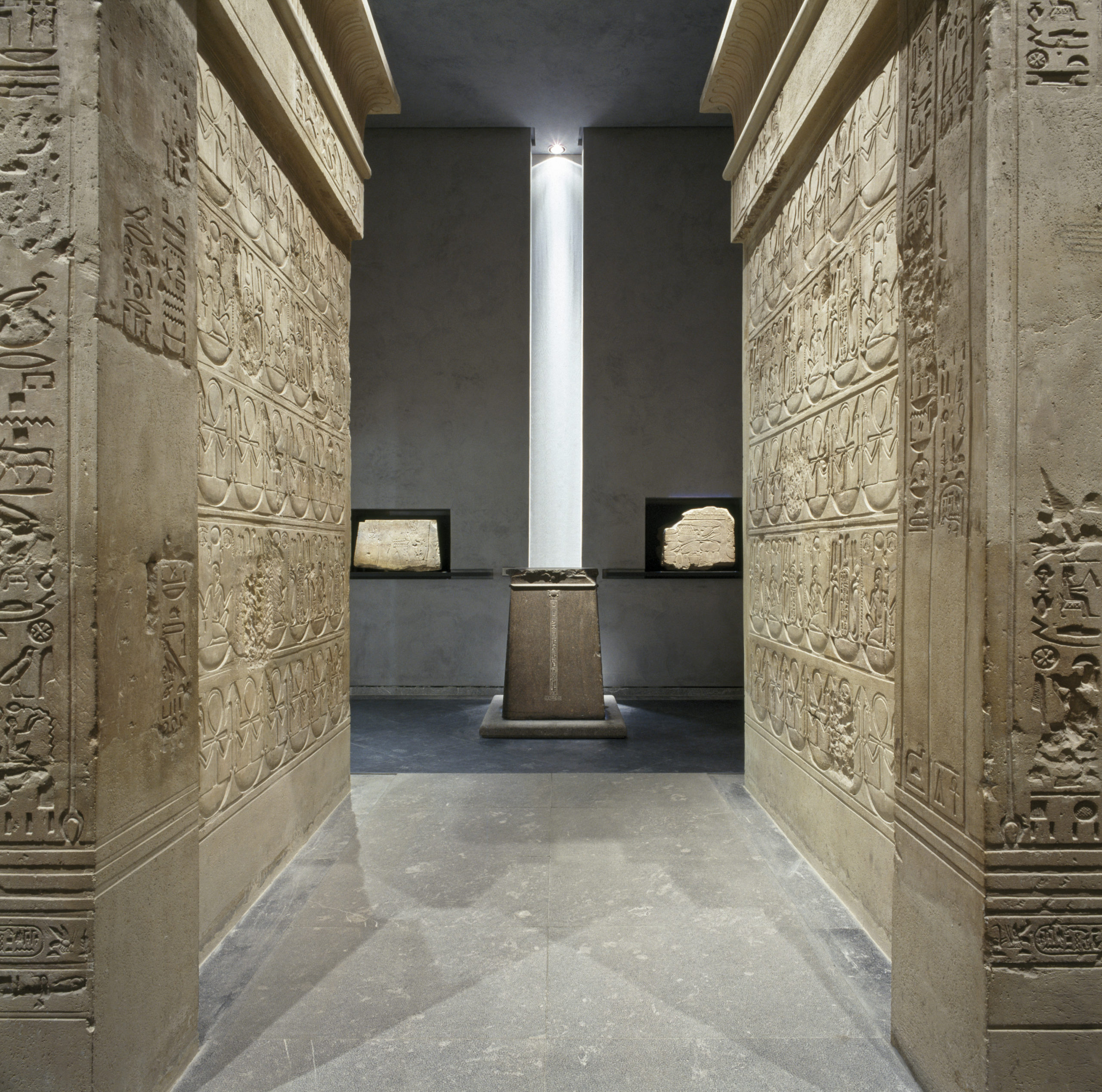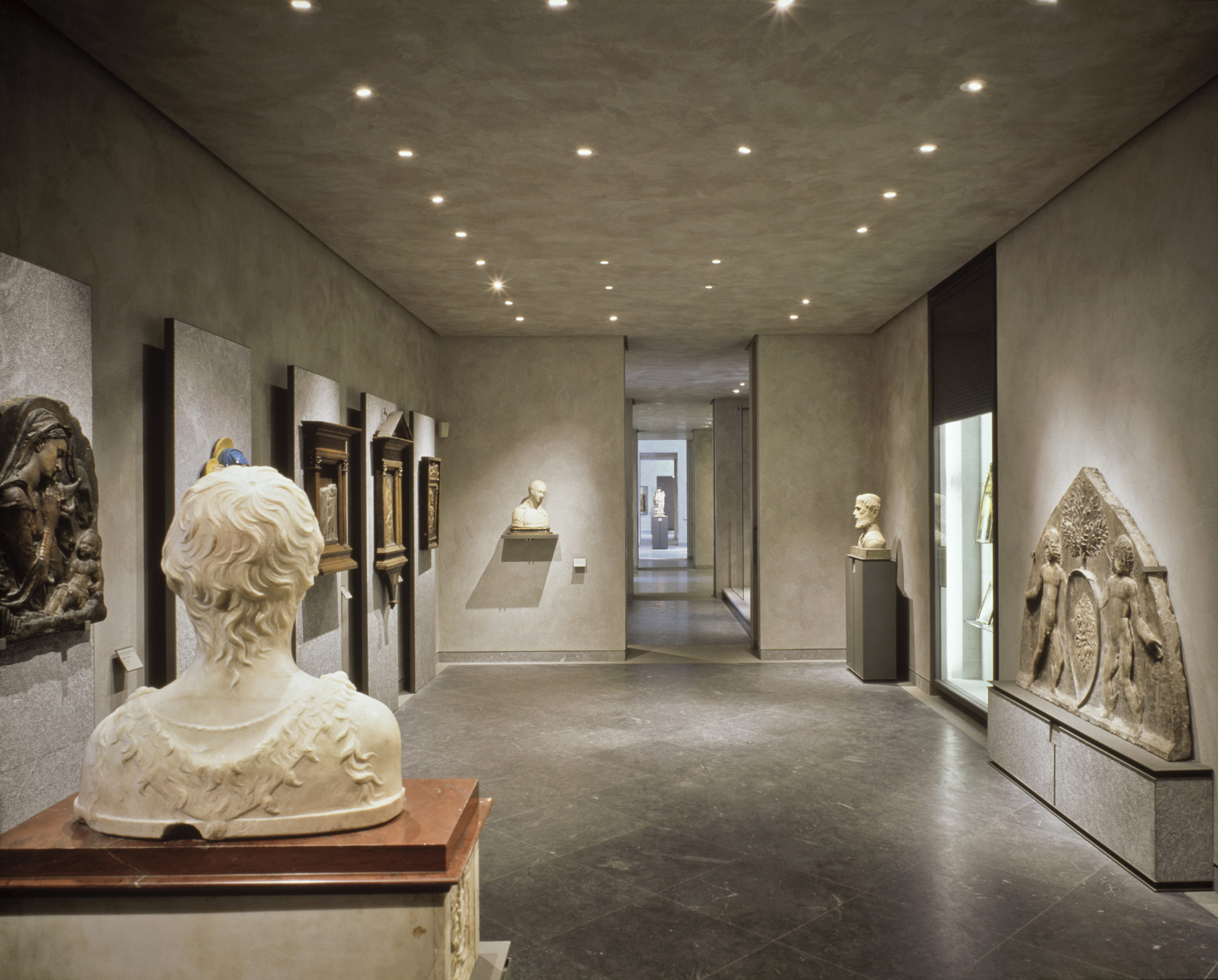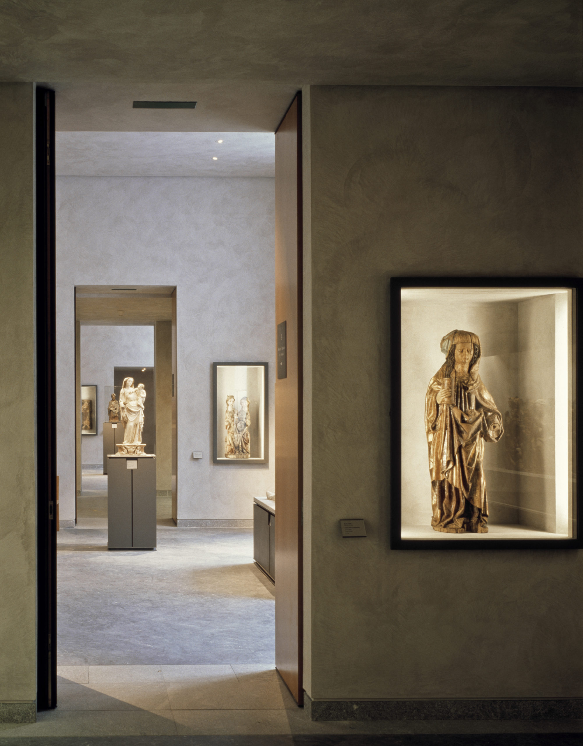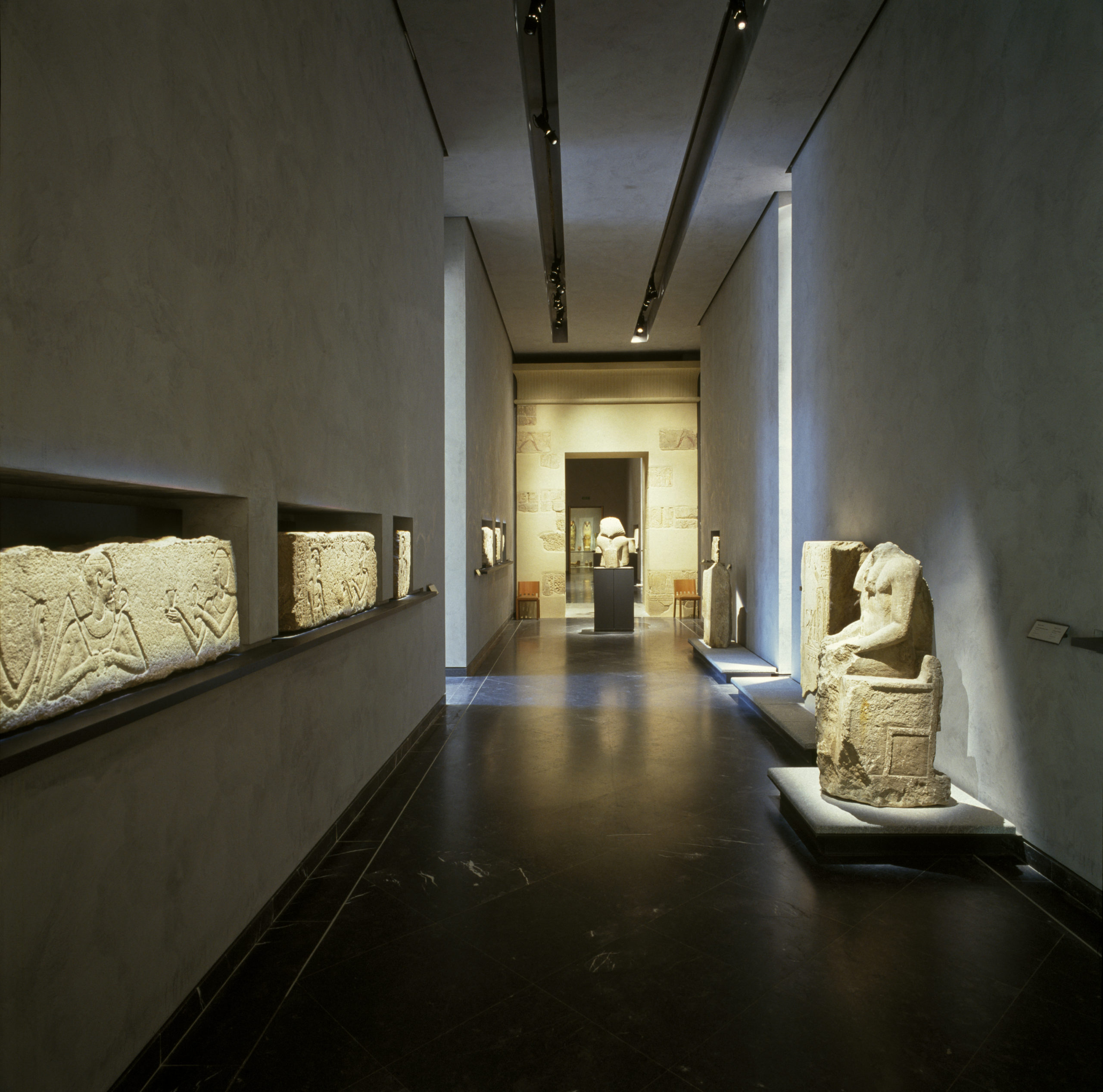 Un enduit coloré à base de chaux éteinte recouvre les murs et s’harmonise avec le parquet de moabi pour créer une atmosphère apaisante. Une ligne de mobilier en cuir et poirier teinté a été créée spécialement pour le musée.