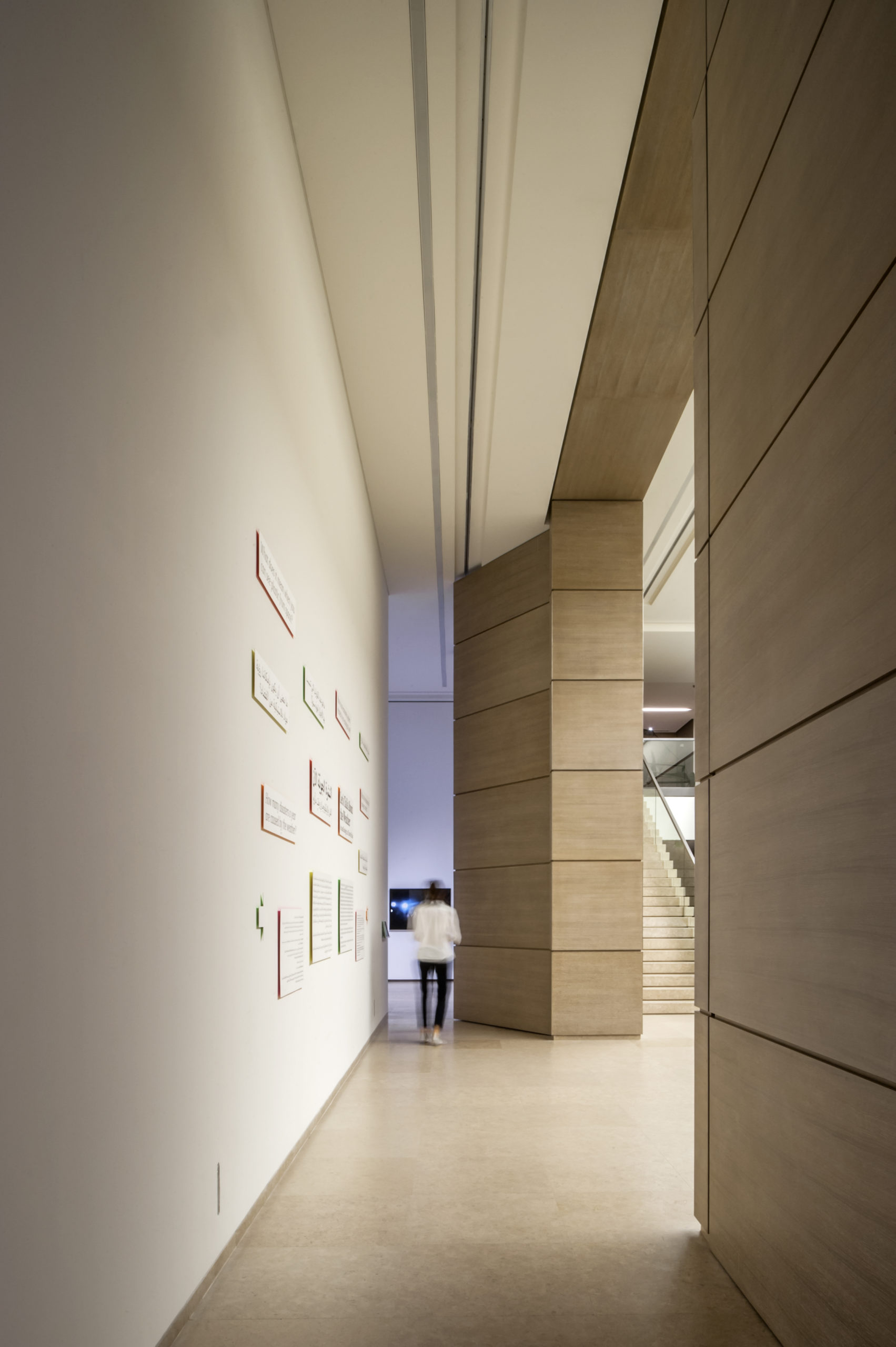 Ce projet s’est développé selon trois axes principaux : aménagement des bâtiments existants, construction de nouveaux espaces en sous-sol et aménagement des jardins. Espaces, matériaux et couleurs servent une architecture enfouie. L’enjeu était de laisser croire au visiteur que jamais il ne se trouve sous terre. Des cheminements ont également été conçus pour empêcher tout un chacun de se représenter cette profonde descente ; le parcours se déroule selon des demi-niveaux où, à chaque fois, paraissent quelques compositions artistiques. La mise en œuvre d’une pierre venue d’Egypte, couleur sable, a défini une palette de matériaux dont les teintes allant des blancs aux beiges participent de cet effet.