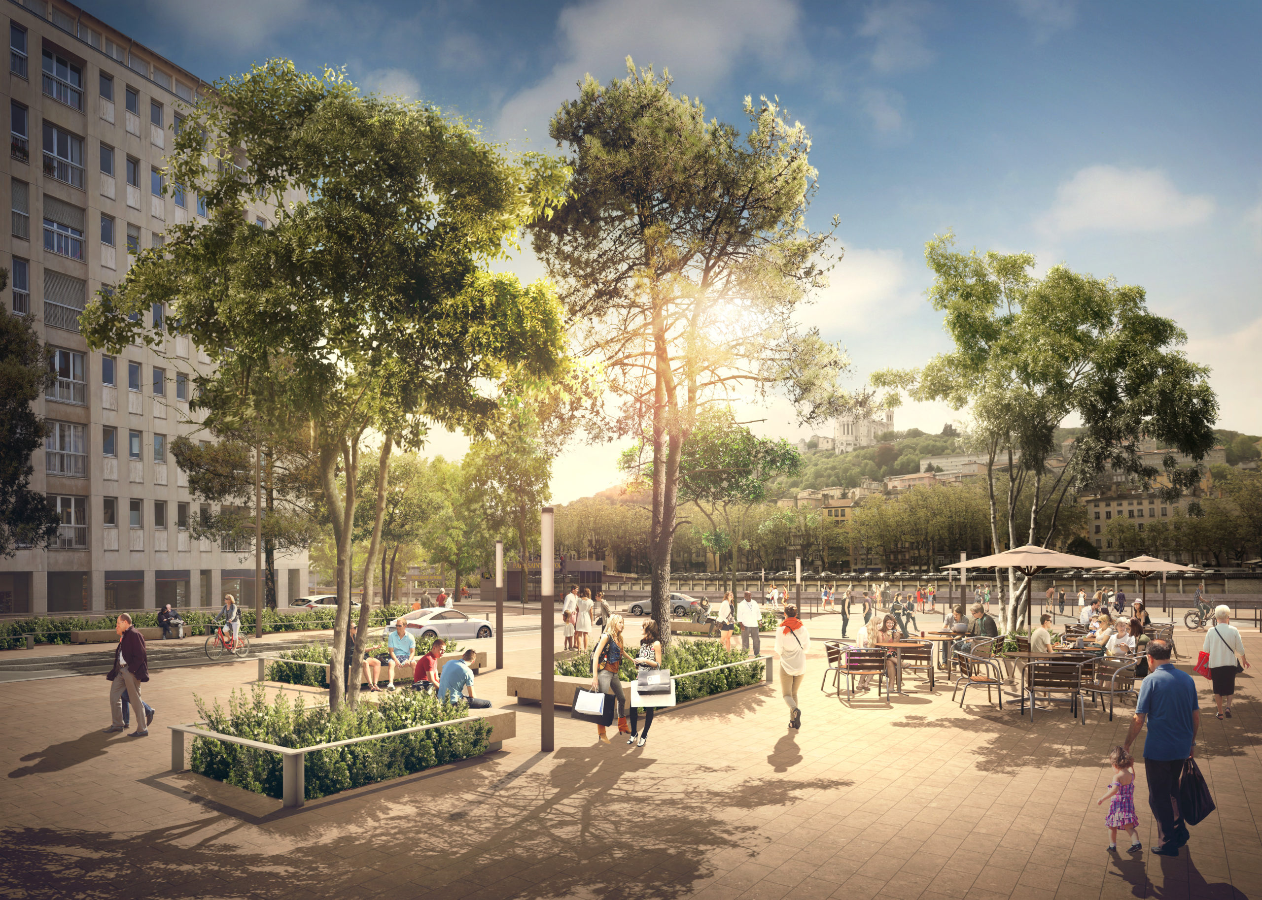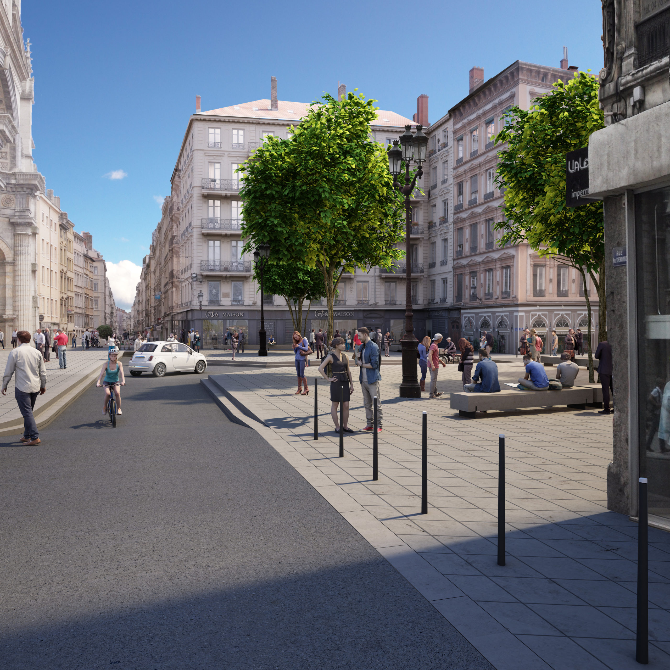 En reconsidérant l’espace public comme le support de la vie collective harmonieuse et apaisée, le projet continue d’inscrire la ville de Lyon dans la dynamique de la vision contemporaine de nos villes européennes.
