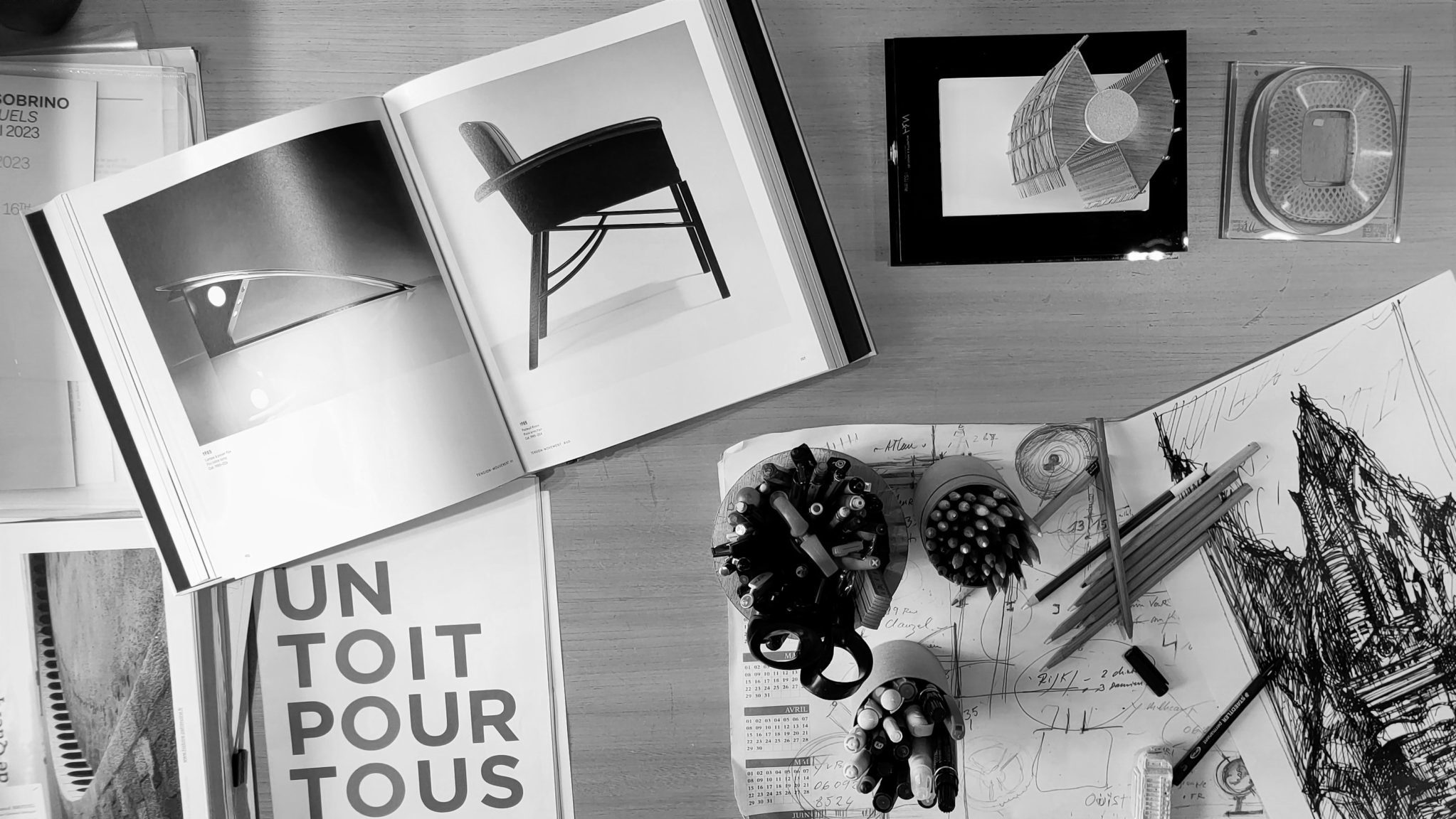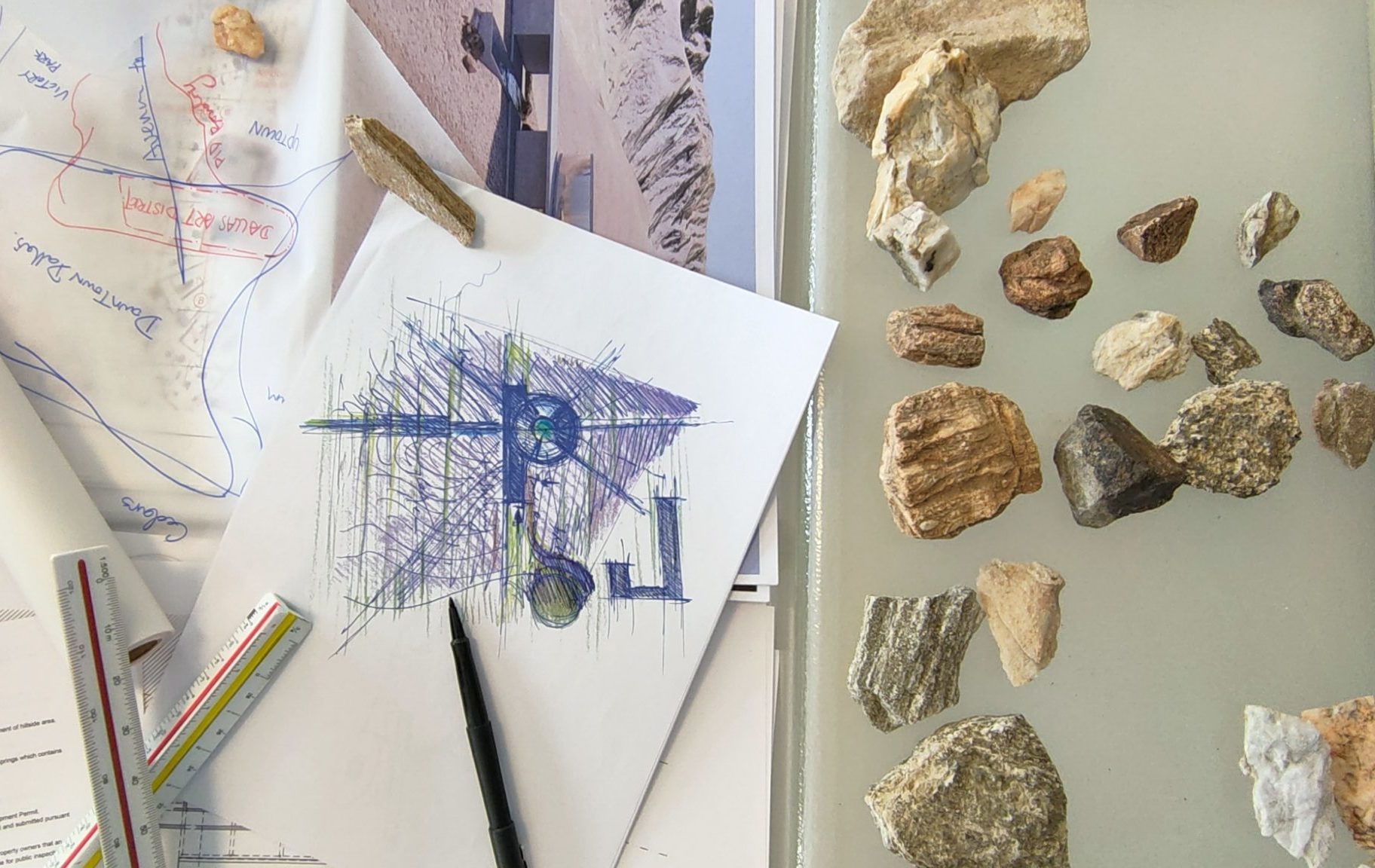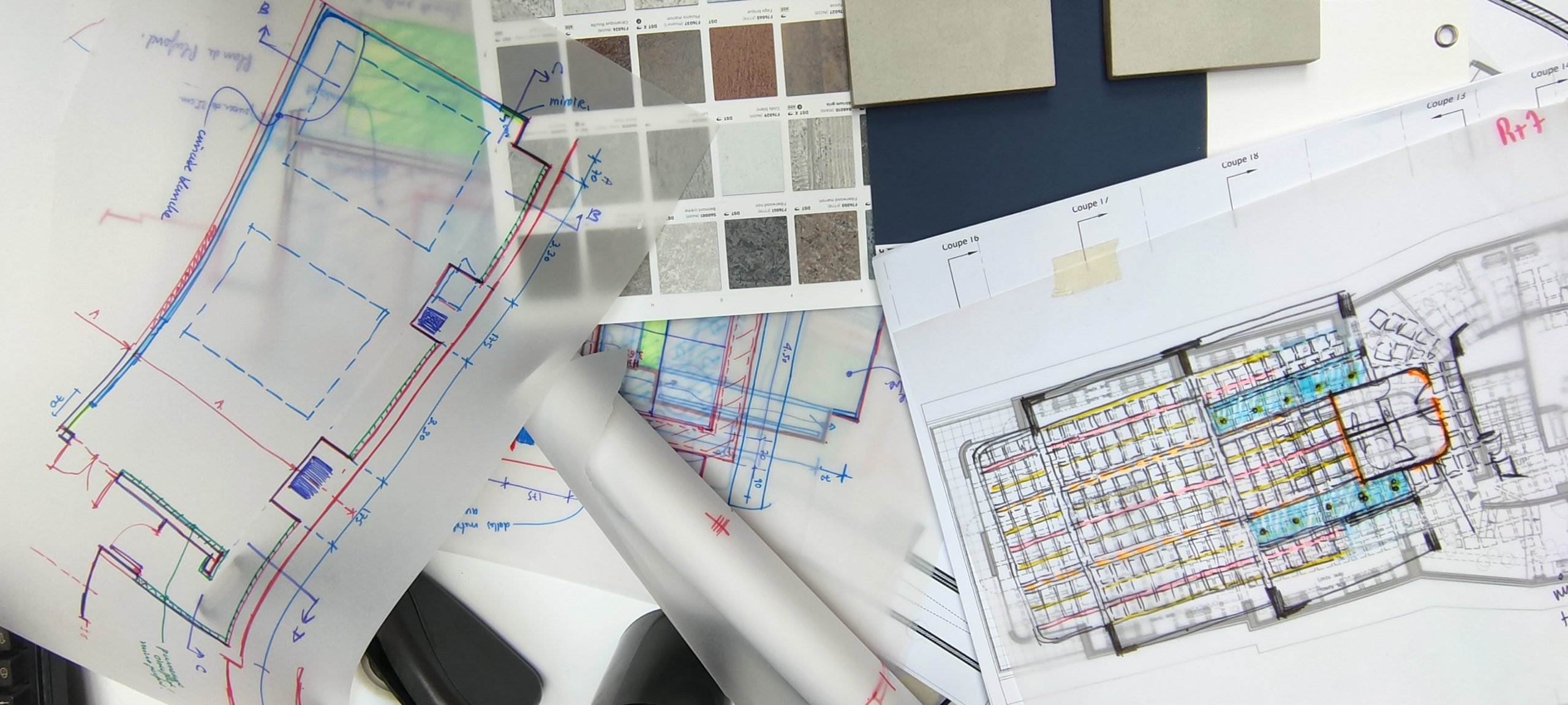 Cette superposition d’idées et de dessins à travers une strate de feuilles transparentes pose les fondations du projet final, enrichi en cours de route d’un dialogue nourri des compétences de chacun.